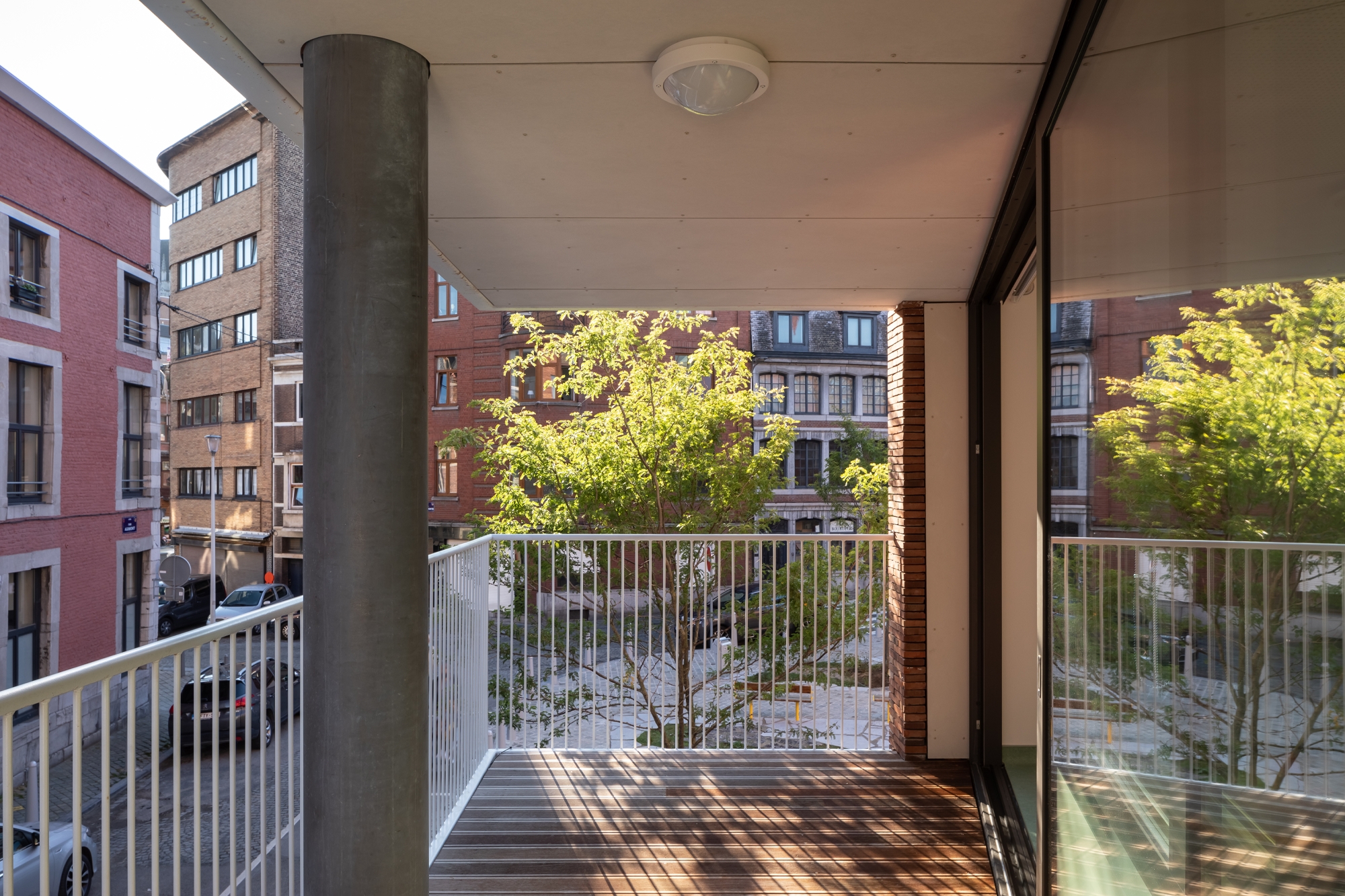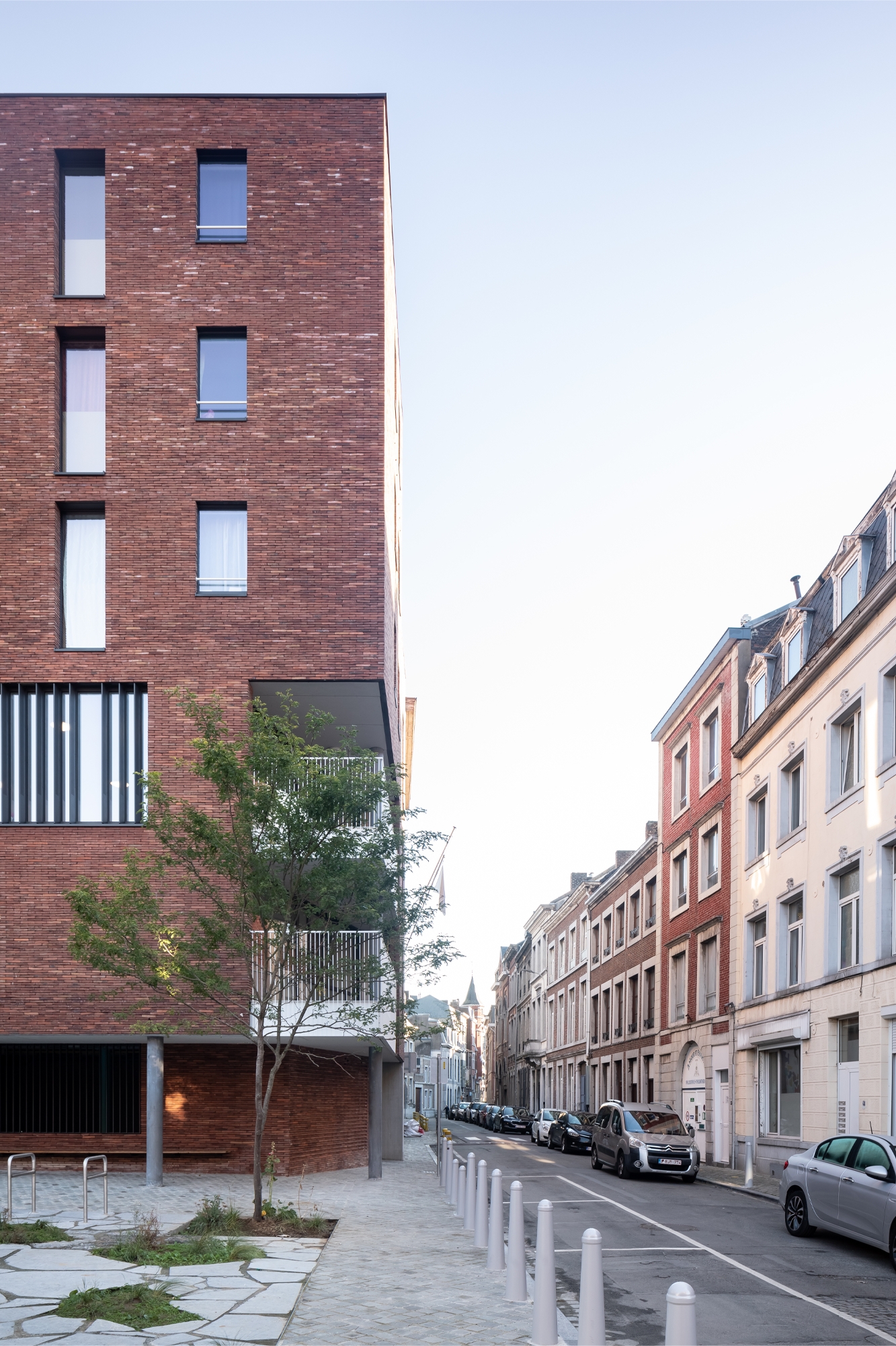 - Located in Rue Hocheporte in Liège, the project aims to revitalise the district in which it is located. With its mixed programme combining public housing (social housing for rent), a nursery, development of the surrounding area and a car park, the project is intended to be emblematic in terms of its contribution to the restructuring of this district. On the one hand, through the creation of a pedestrian link across the urban island, and through the quality of the proposed interior spaces.[...]