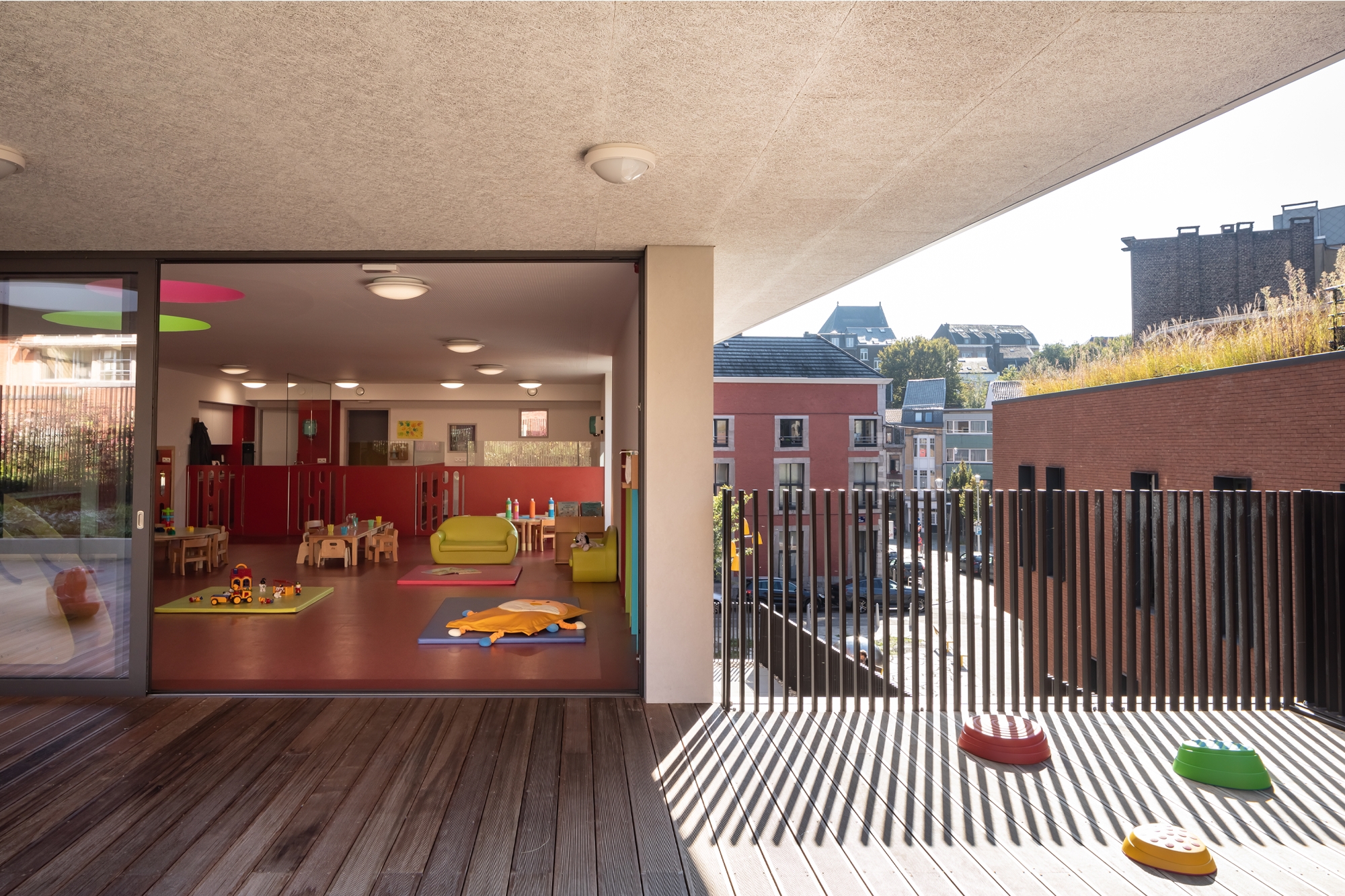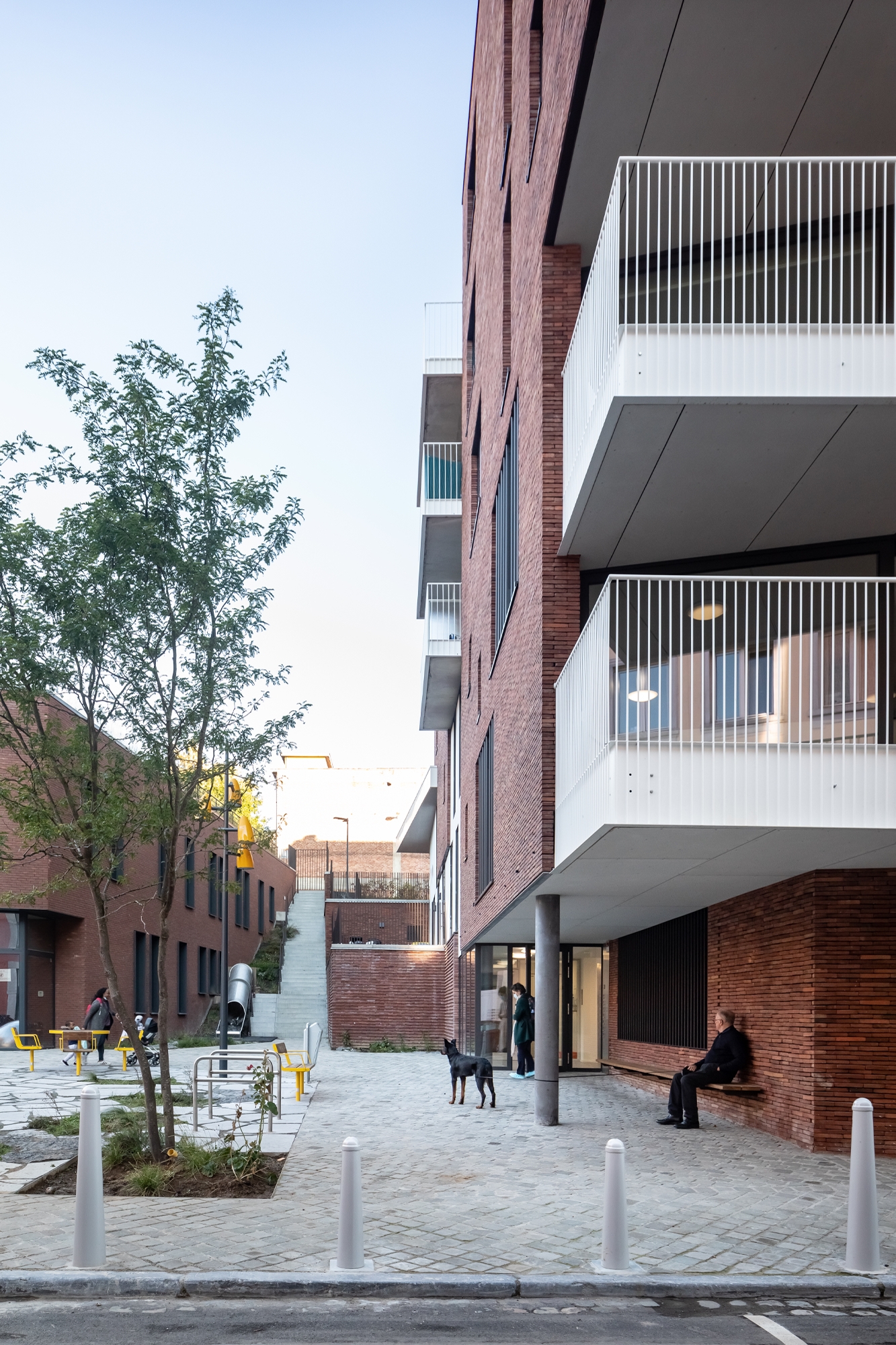These provisions encourage interaction between the residents of the housing, the users of the crèche and the semi-public spaces in order to become an intergenerational meeting place for the residents, local residents and collective activities.