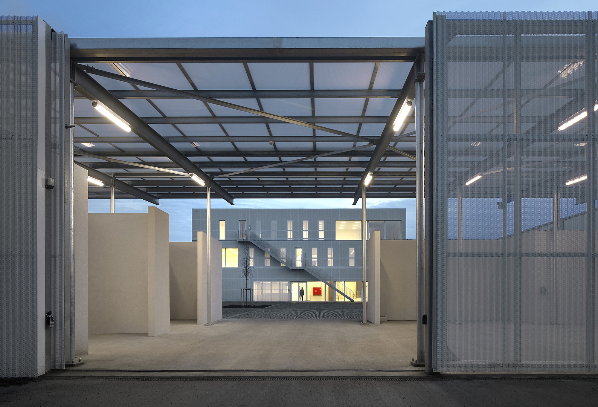- In order to avoid being the simple functional transposition of the program, invariant spaces have been taken up in "families": closed utilitarian spaces, closed discretionary spaces, closed but visible individual or meeting spaces, open and shared collective spaces.