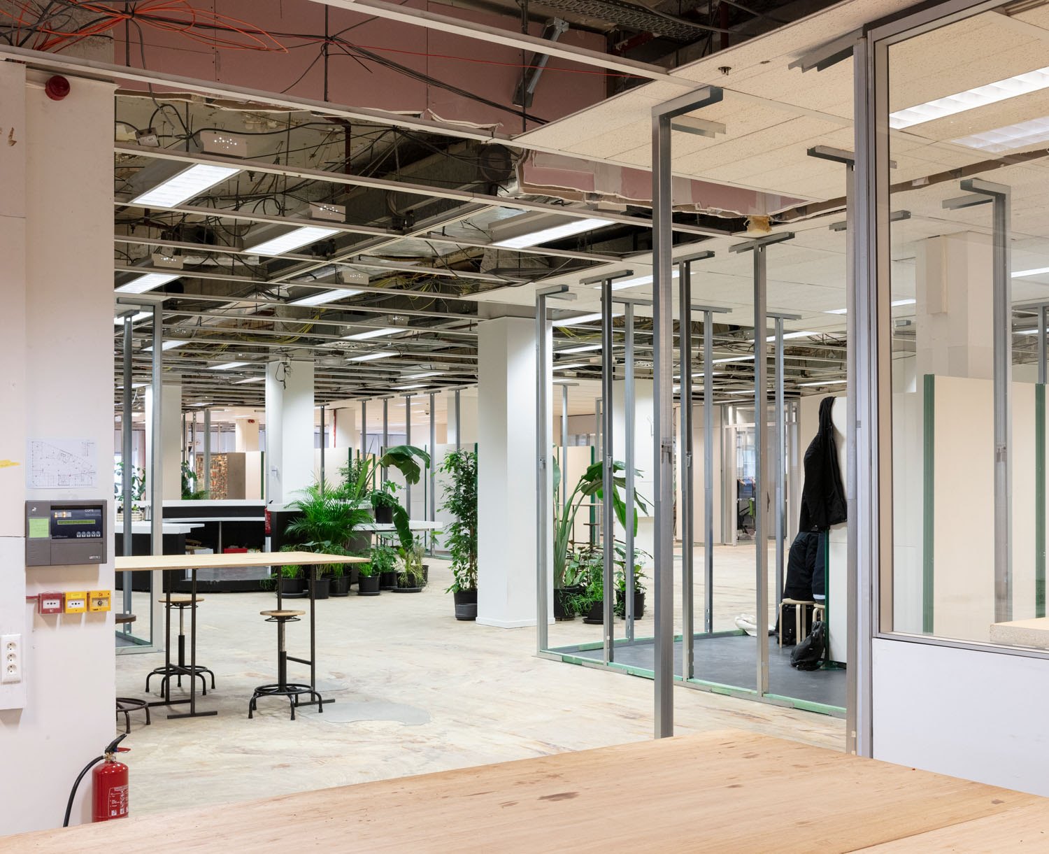 - A very tight timeframe of 2,5 months between the first meeting and the inauguration of the project resulted in an intensive and unique collaboration between architect and client. Both stayed in the building during the works, throughout the entire process. The vision and the program, therefore, evolved on the go, within the process. Striving for a design which can be used and appropriated by citizens, entrepreneurs, governments, and academics to help shape tomorrow’s cities and landscapes. It's a shared workspace and working environment, programmed by and for a growing community of actors that embody and propagate societal and spatial innovation. Within this context the most publicly accessible point of entry is located on the axis of the central stairwell, which in turn opens onto a central avenue of Brussels. It is a potential site for lectures, receptions, lunches, conversations, flows of circulation...interactions of any kind. It subtly permeates the life of the street into the building. This is translated into an architecture that has been reduced to its brutal form, stripped of floor and ceiling finishes. We introduced an in-between space, to protect the silent private workspace from the more public zones. This is a site for spontaneous or intimate consultation, on a large or small scale, with possibilities for workshops or exhibitions. ACTIRIS has been selected for the guided tours by Urban.brussels during the Brussels Archiweek 2020 - Fundamental.[...]