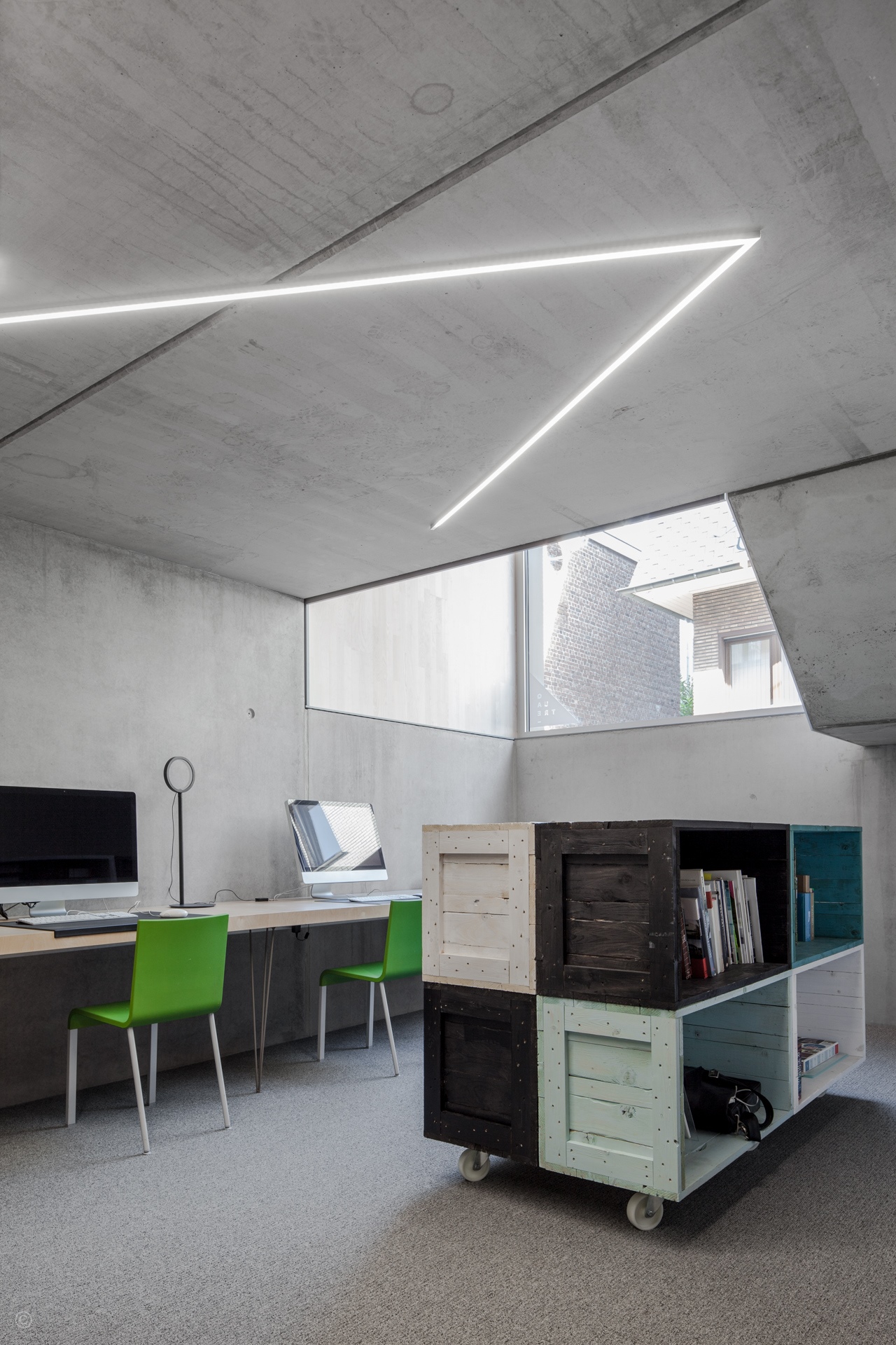 - The project, comprised of a house and offices, is situated on the last vacant plot in the street. The central location, close to the various municipal services, and the home office will optimize daily runs and facilitate the use of soft modes of transport.[...]