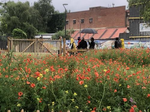 In the heart of the meadow, a wet garden reminds the importance of water and of the canal in the history of the site. The entire plant collection is characteristic of the wet valleys of the Senne, the former waterway of Brussels, now buried.