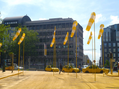 For months, the area was the scene of organised and spontaneous events. Rappers, skaters, publicists, tourists and a hen night used the yellow theatre on Place Madou as a venue. It was used as an open-air cinema as well as for concerts, dancing and daily football matches between children. Local traders took over the space: a number of pavement cafes opened up, clothes rails were brought out onto the pavement. Urban life resurged for a year.