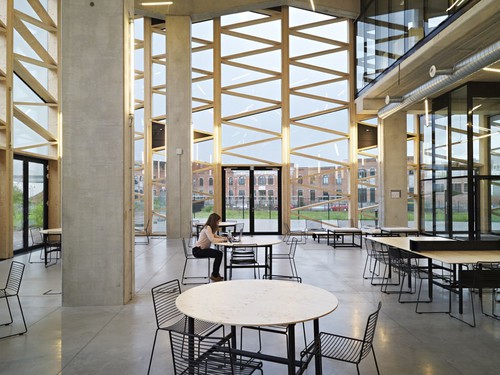 It includes workshops for environment-oriented businesses and spin-offs (low-energy), an incubator (nzeb) and office space (passive), plus an array of extra amenities open to the public including exhibition space and café. Two principal volumes (phases I and II) articulate a new public plaza offering transition between the more industrial quartier south and the more urban and residential one north. Sitting in limbo between these apparently opposed activities, the project’s role is to create synergy: encouraging visitors as well as occupants, confirmed specialists as well as budding pioneers-to-be, adults as well as children to be part of the collective emulation housed within. GREENBIZZ’s dynamic, generous, and permeable organization, its mission to create responsible employment, and its clearly expressed sustainable identity all carry the same message: sustainable design can and must be about much more than implementing energy-efficiency and responsible material-sourcing … sustainable design must be about implementing hope.