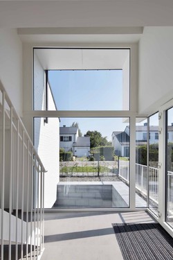 The staircase treatment reinforces the daylight quota in the central part of the homes.