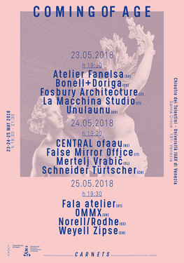 CENTRAL: Lecture in VeniceCENTRAL office for architecture and urbanism, a Brussels-based practice founded in 2014 by Pierre BURQUEL, Radim LOUDA, Paul MOUCHET and Valentin PIRET, has been invited by the Architecture University of Venice - IUAV to give a lecture on May 24th in the frame of the round table entitled CARNETS talks Coming of age.