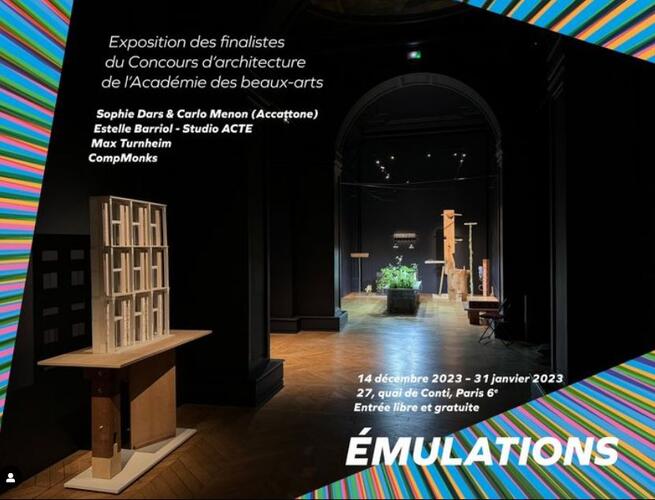 The 4 finalist projects are on show until 31 January as part of the "Emulations" exhibition at the Pavillon Comtesse de Caen, Palais de l'Institut de France (free admission).