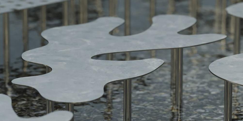 Ces recherches personnelles ont abouti à une série de 44 tables basses en aluminium poli. Un protocole méthodologique précis a été établi pour la réflexion et la fabrication. Tous les participants ont ainsi sélectionné une image d’un objet qui les fascinait personnellement. Une forme en a été dégagée, puis a été redessinée, mise à échelle et envoyée à une machine à commande numérique pour être découpée dans une feuille d’aluminium de 5 mm d’épaisseur. Des pieds cylindriques en aluminium, de 30 mm de large et 27 cm de haut, ont ensuite été soudés. L’ensemble a été poncé, lustré et poli pendant des heures.