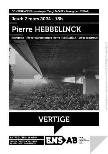 Pierre Hebbelinck à RennesPierre Hebbelinck donnera une conférence intitulée Vertige à l'ENSA Bretagne le 7 mars à 18h.