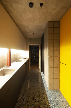 Le projet consiste en trois opérations majeures ; (1) constituer un nouveau mitoyen afin d’installer la nouvelle répartition, (2) faire émerger la matérialité du bâtiment par éviction du plâtre, (3) ornementer les espaces servants