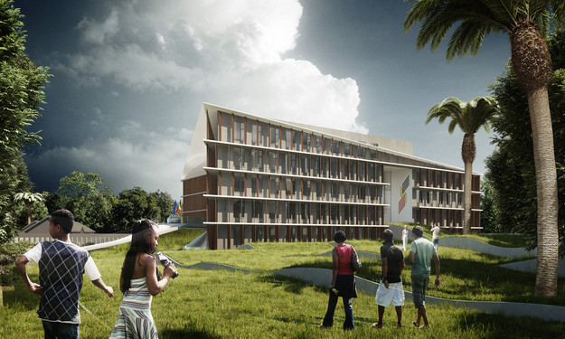1. sustainability : Premier projet passif d’Afrique, les critères du standard ont du être adaptés au climat tropical humide de Kinshasa. L’attention est également portée sur l’eau, la biodiversité, efficience des techniques et la qualité des matériaux. Le projet est également BREEAM excellent.