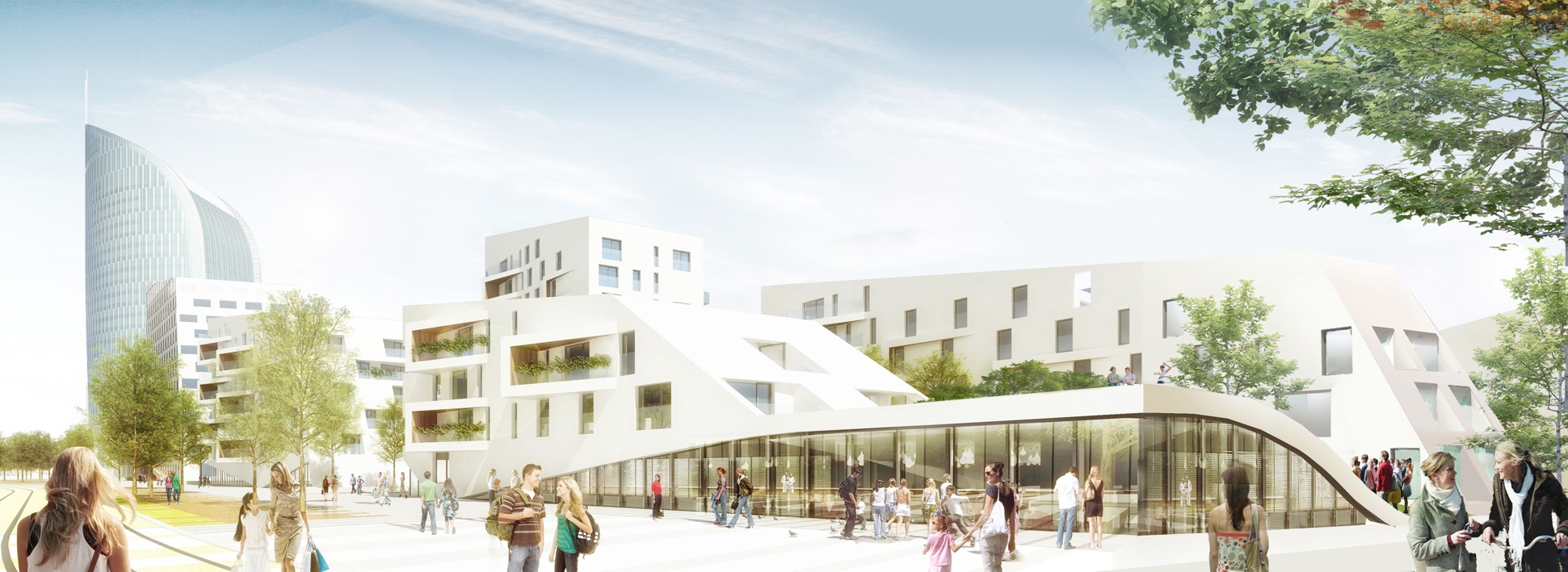 - Quartier durable à Liège, 162 logements, crèche,commerces, et bureaux.