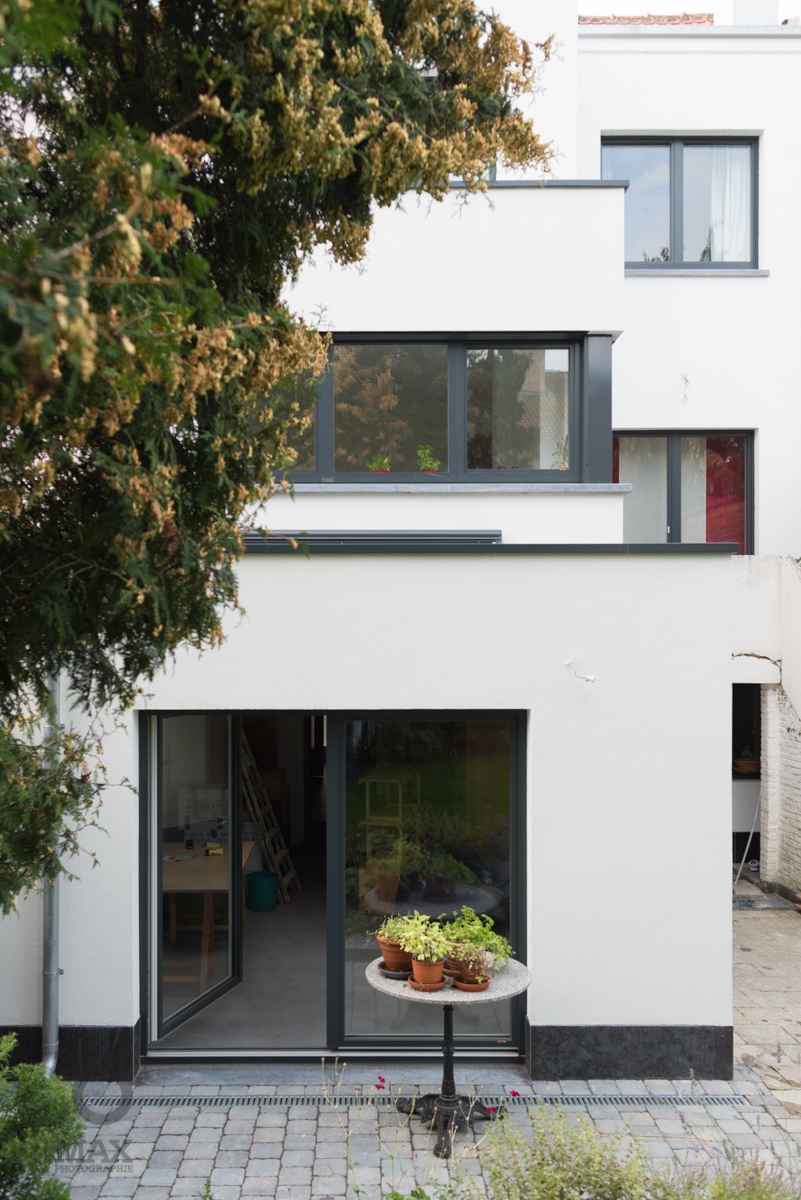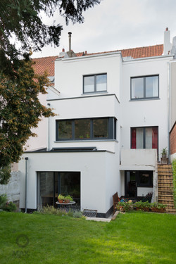 - Rénovation d'une maison unifamiliale, avec extension sur deux étages à l'arrière