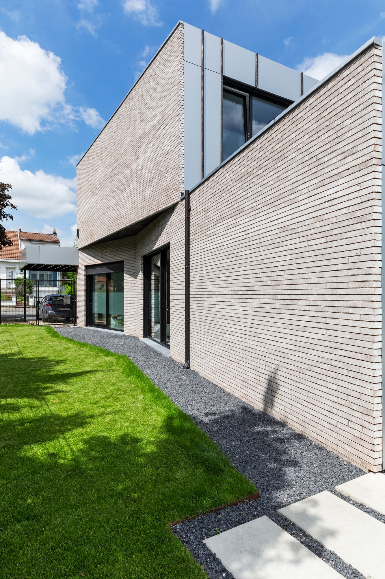 Le projet est orienté perpendiculairement à la voirie afin de profiter de la profondeur du terrain. L’impact du projet depuis la rue est ainsi réduit.