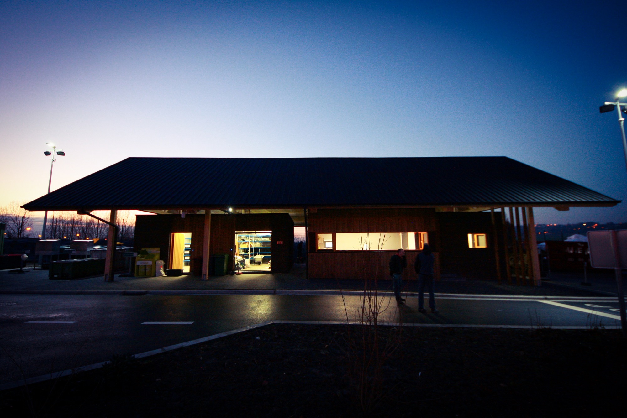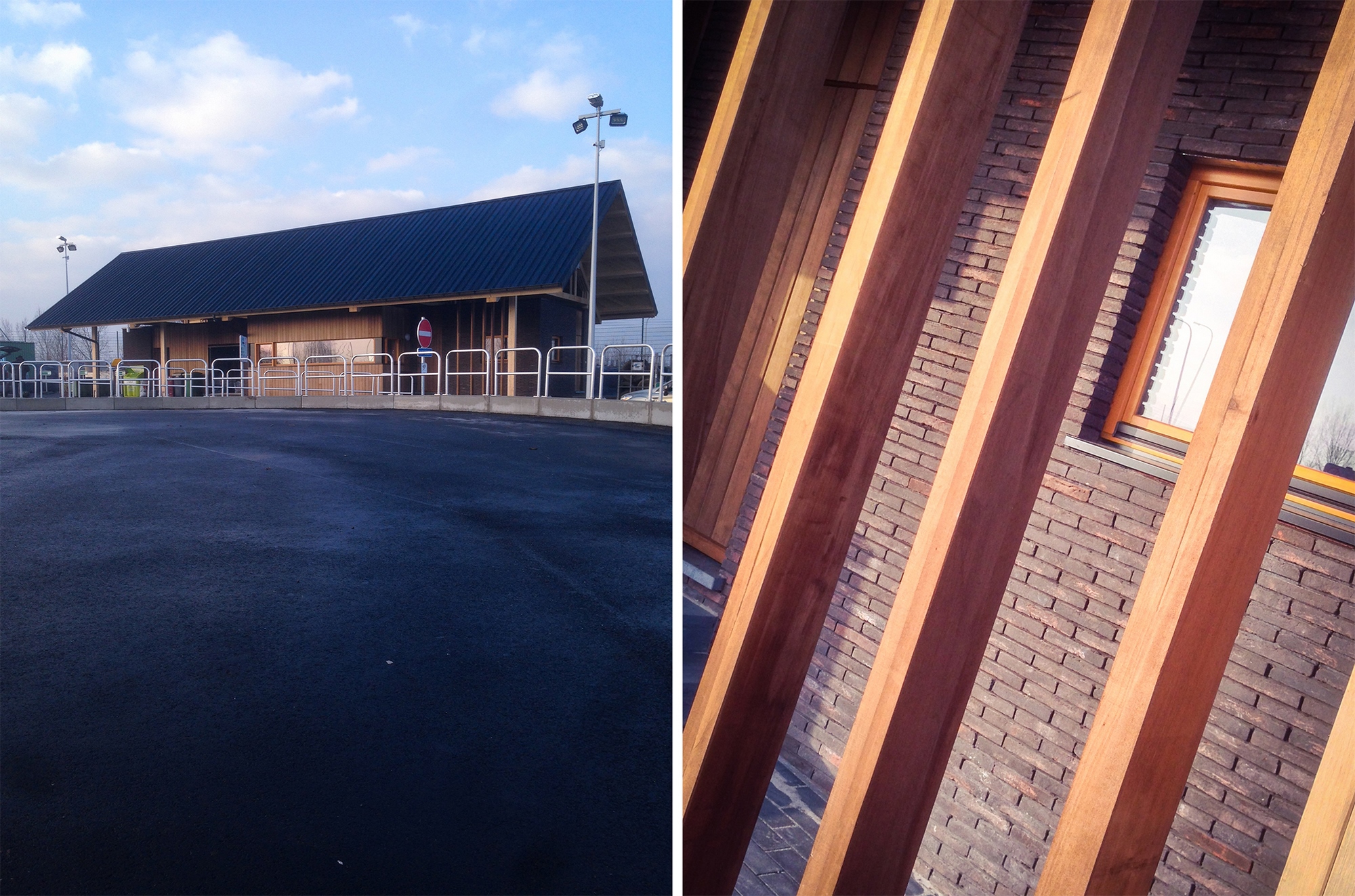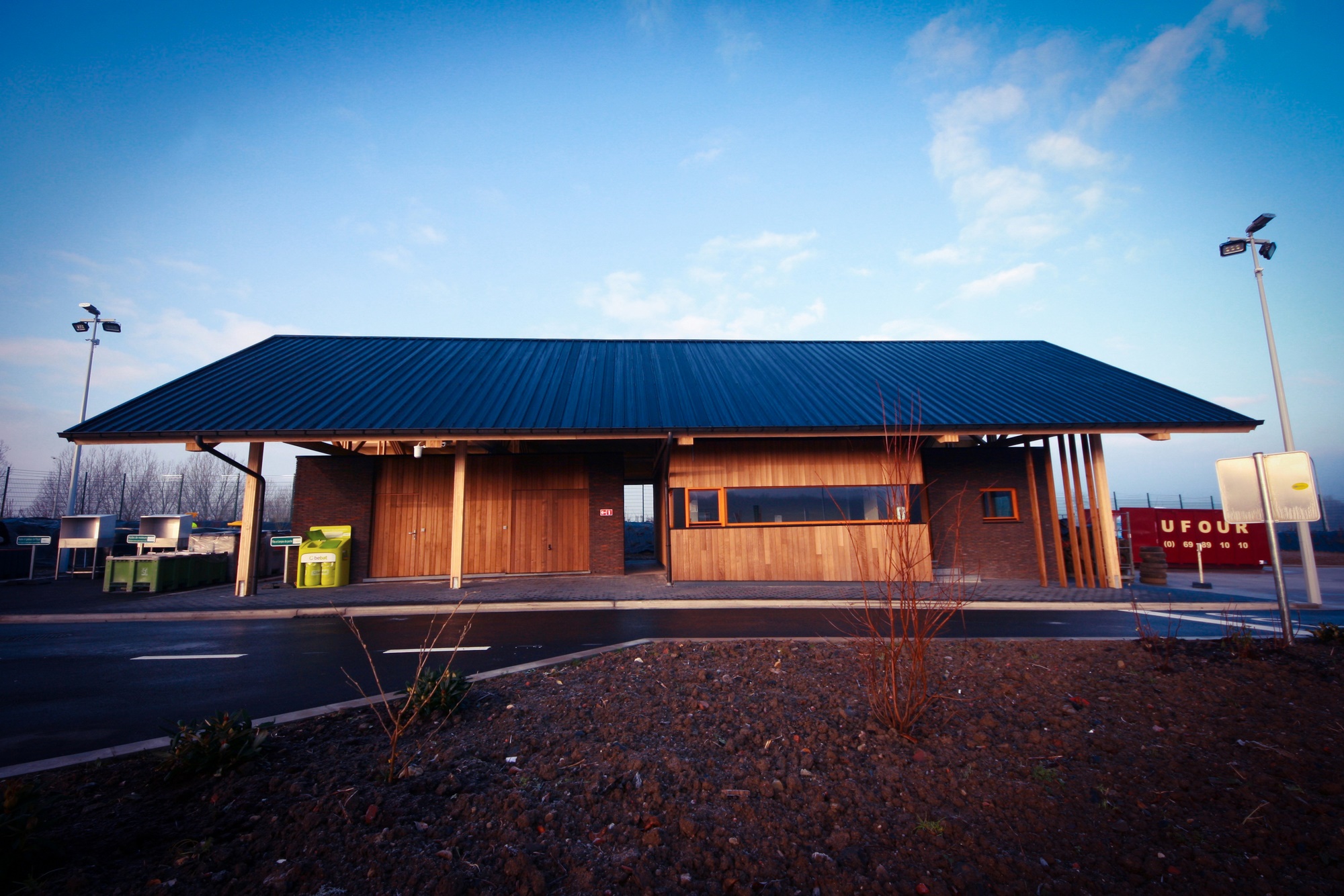 - Le projet consiste en la création d'un nouveau parc à conteneur à Tournai, suite à un appel d'offre. L’ensemble des bâtiments sont construits en tenant compte de la typologie des constructions en zone agricole tant au niveau du style de construction (gabarit rectangulaire, toiture à pans) qu’au niveau de l’emploi de matériaux locaux tels que la brique, le bois, la tuile. Ces éléments permettent ainsi une meilleure intégration du projet dans ses alentours.[...]