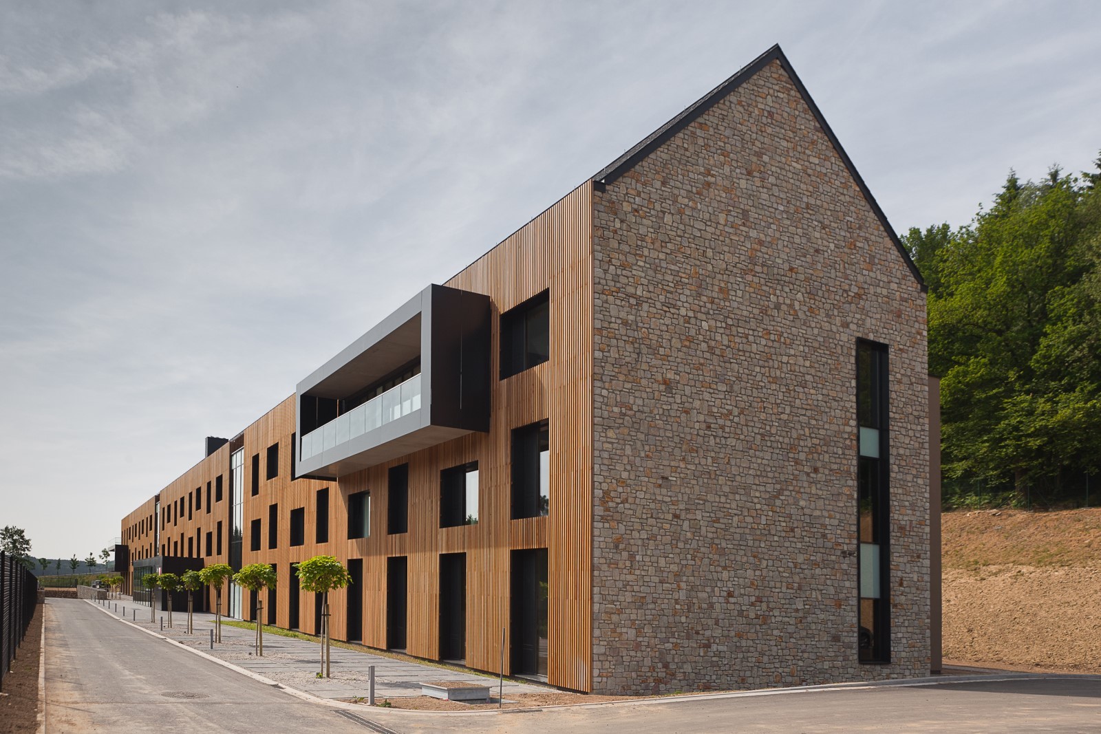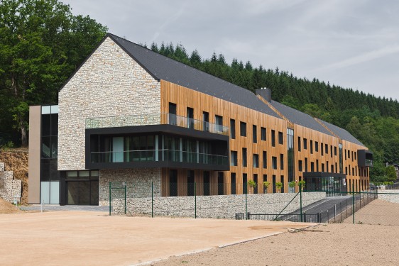 Implanté au cœur de l’Ardenne, la construction de ce complexe hôtelier a voulu en garder l’esprit en mariant l’architecture traditionnelle régionale à quelques interventions plus contemporaines rappelant le caractère technologique des activités développées dans la région.