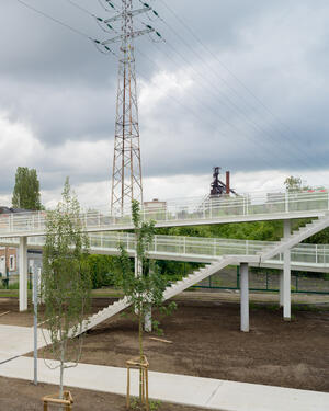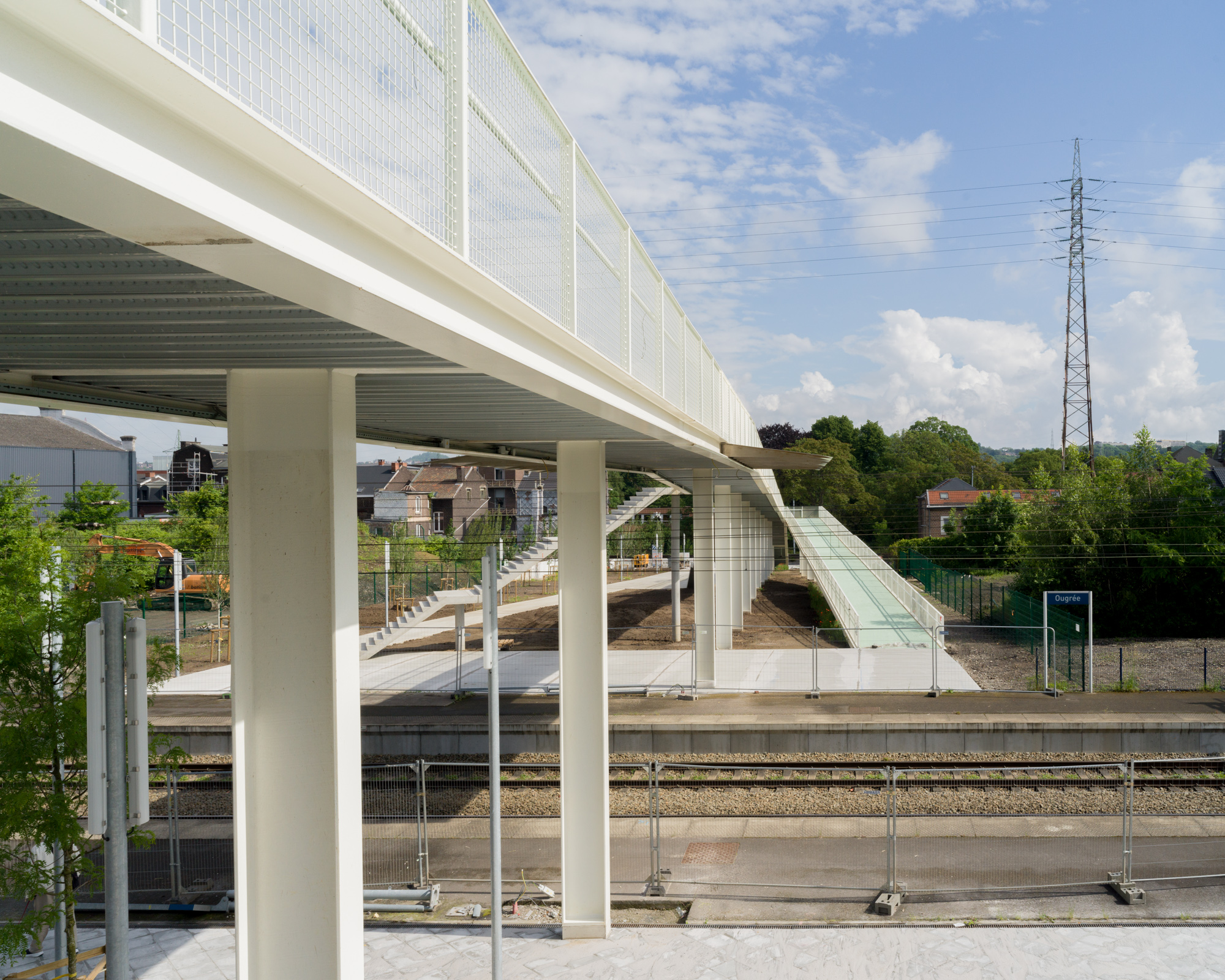 - La passerelle permet de connecter les différents points d’accès du quartier Ougrée : le nouvel arrêt «Ougrée» de la ligne de train 125A, le nouvel espace public et le parking aménagé dans les Ateliers Centraux, le boulevard urbain, le parc Trasenster et son accès paysager à la Meuse.[...]