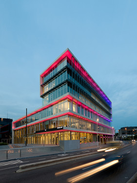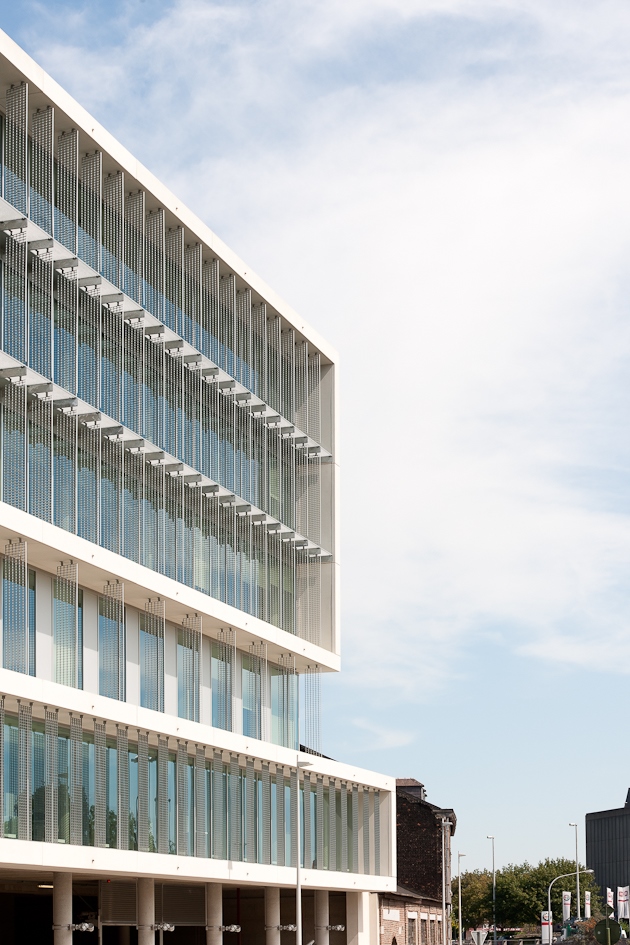 - Il s'agissait évidemment d'affirmer une certaine visibilité, la présence de la RTBF, et donc nous avons voulu une architecture contemporaine, assez sobre, et très transparente. L'autre défi était la présence de la RTBF au cœur de la Médiacité. Nous sommes face à un bâtiment à usage plus commercial, avec une architecture plus ludique, plus éphémère, sans doute un peu plus mode. Donc on nous a souvent posé la question de savoir comment on allait dialoguer avec ce bâtiment là. Et la réponse nous a paru assez limpide parce que nous avions une autre mission, nous devions traduire la présence du service public audiovisuel en Wallonie, et donc nous avons voulu une architecture plus pérenne et nous avons voulu symboliser la présence de la RTBF pour longtemps à Liège.[...]