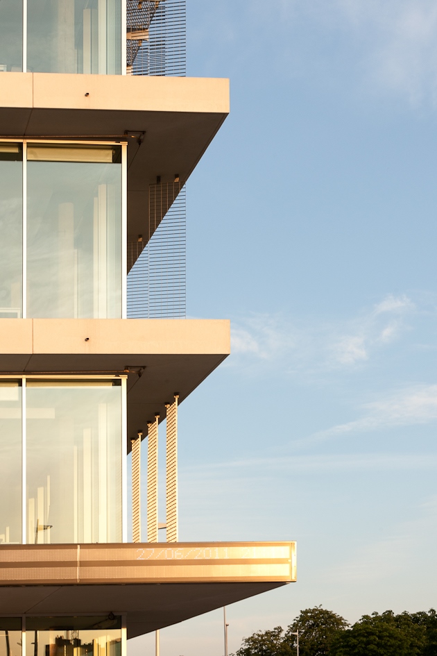 Le volume supérieur du bâtiment RTBF s’affirme comme un point de repère à l’échelle de la ville. Les façades, entièrement vitrées et équipées de protections solaires, confèrent au siège de la RTBF une identité clairement reconnaissable.