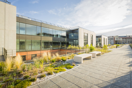 Sur le plan urbanistique, le bâtiment URM assume par sa façade principale, rythmée et contemporaine, une élégante continuité avec le bâtiment PPR.