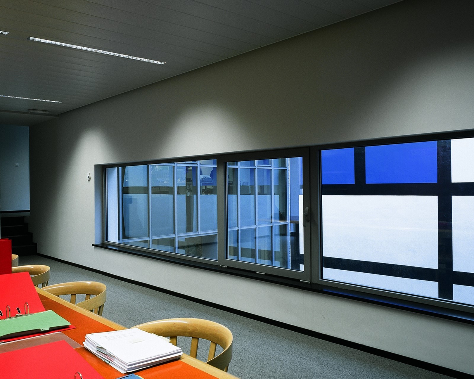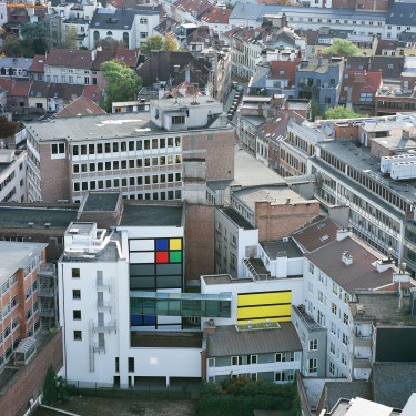Grace à une collaboration très étroite avec l’artiste Jean Glibert, la couleur opère réellement dans le bâtiment et y joue un rôle prépomdérent.