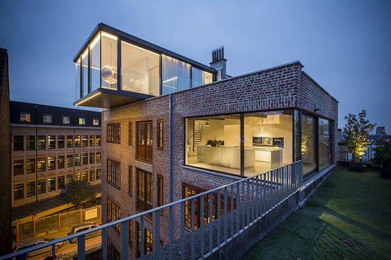 - C’est au sommet d’une bâtisse de style art déco que le projet d’appartement « NRF » est né. Il consiste en une rénovation et extension d’un appartement initialement 2 chambres situé sur les deux derniers niveaux de la bâtisse. Celui-ci est transformé en un triplex de 3 chambres, avec un bureau et une salle de musique et atelier de sculpture. Désireux de respecter le bâti existant mais convaincus que de la nécessité d’un parti architectural fort, l’extension est placée sur la toiture, telle une boîte de verre en porte-à-faux au-dessus de la cour implantée côté rue. Les deux niveaux existants sont quant à eux remis à neuf, et la relation intérieur-extérieur est renforcée par des percements opérés en retrait par rapport à l’espace public. En tirant parti du bâti existant, la conception du projet se veut simple et esthétique, elle propose une utilisation efficace des lieux et une modulation dans le temps. Ce sont pour nous les bases d’une architecture fonctionnelle et contemporaine. Au-delà de cela, nous sommes convaincus que permettre à des familles d’habiter en ville dans des espaces adaptés à leurs besoins tout en continuant à pratiquer leurs activités répond aux enjeux socio-économiques et durable de notre société[...]