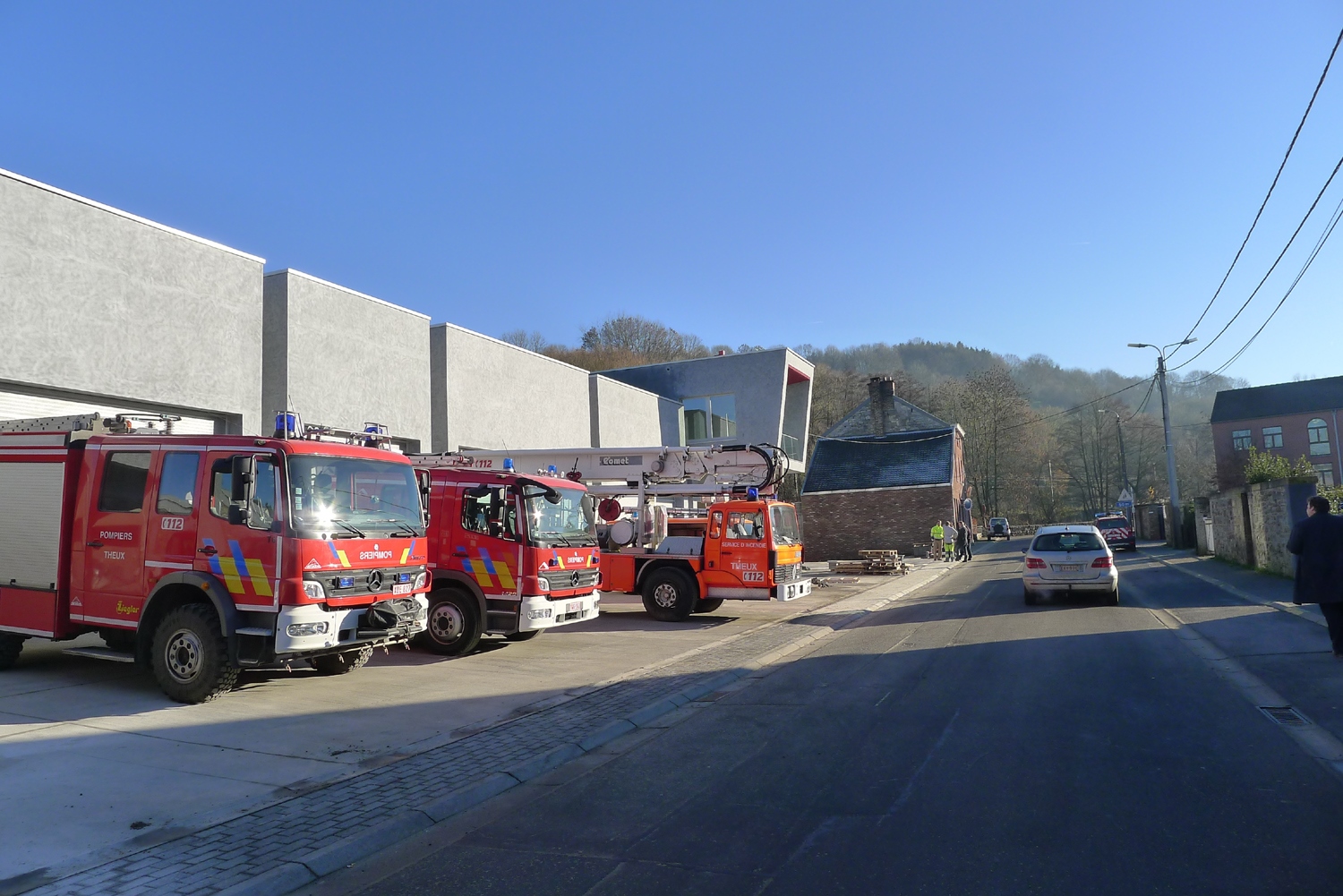 - Réalisation d'une nouvelle caserne pour le service régionale d'incendie de Theux. Garage 9 véhicules de pompiers + équipements, magasins et atelier mécanique. Locaux dimensionnés pour 50 pompiers soit : sanitaires, vestiaire chaud et froid, salle de cours, salle de sport, réfectoire et dortoir (15 personnes). Locaux administratifs bureau et centre de prévention. En plus un parking de +/- 30 place pour les pompier volontaires et de 3 places pour les visiteurs.[...]