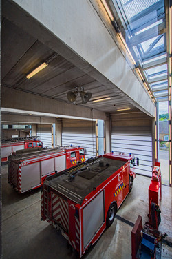 - Afin de permettre une flexibilité maximum des garages nous proposons huit grands emplacements pour camions additionnés d’une place pour le véhicule du commandant.[...]