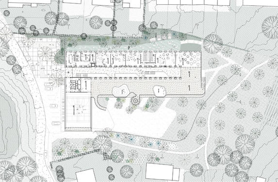 Le quartier du Boutte ressemble à une grande casbah en hauteur, encerclée par une muraille d’infrastructures, et irriguée par un dédale de rues et de venelles. Mais il lui manque un centre : un lieu où se rassembler et faire communauté, mais aussi un lieu pour rayonner au-delà de ses murs et accueillir les habitants des autres quartiers. Pour ce faire, le site est d’abord aménagé comme un grand verger, inspiré de ceux typiques de la région liégeoise. Il s’étend depuis le Thier de Jace jusqu’au coteau qui descend vers les fonds de jardins voisins.