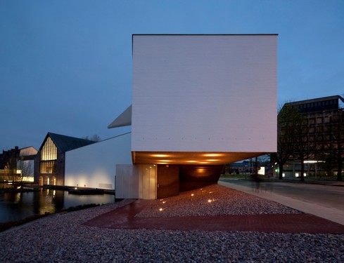 - La réponse urbaine se fonde sur l’observation de Mons, ville fortifiée de garnison, qui va connaître un tournant important dans son développement lors de la disparition de ses dernières enceintes. Ces fortifications disparues impriment encore la ville dans son mode d’organisation. La Machine à Eau en est un témoin majeur, symbole d’une société de l’industrialisation soucieuse de l’amélioration de la qualité de vie. La valeur patrimoniale du bâtiment dépasse sa qualité esthétique et technique. L’opacité des extensions, conçues de telle manière à favoriser l’introspection sur le contenu contraste avec l’espace de lumière du corps du bâtiment. Le parcours incliné est limpide et s’inscrit dans une logique spatiale et sensorielle permettant au visiteur de se consacrer uniquement à ce à quoi il doit être confronté.[...]