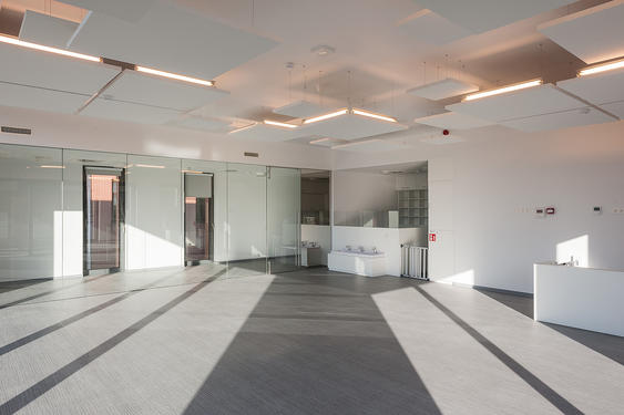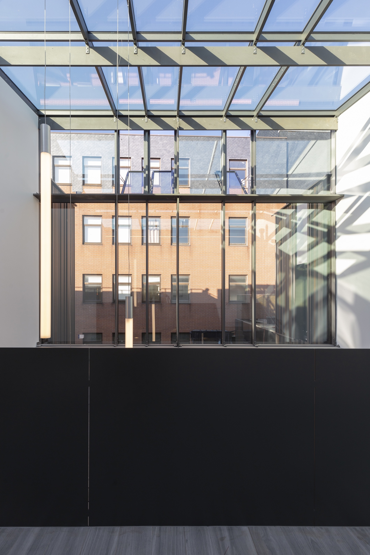 La crèche s’organise autour d’un lumineux atrium central qui amplifie ses espaces et sa relation à l’extérieur. Ce cœur ouvert se développe sur 3 niveaux, baignant chaque étage d’une lumière abondante et créant un espace de rencontre, d’activité pour ses 12 sections et une circulation spacieuse qui en dessert les différentes fonctions.