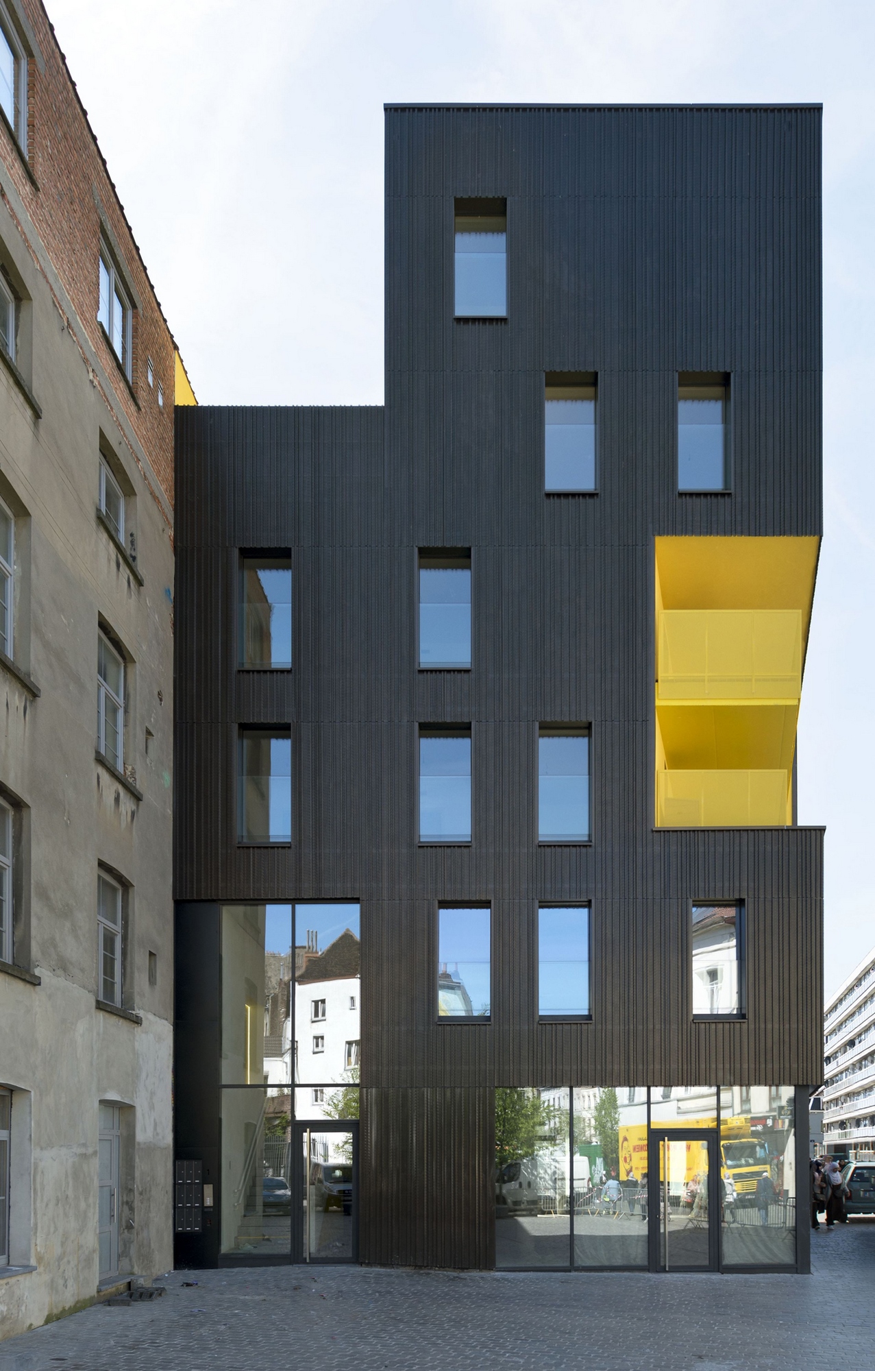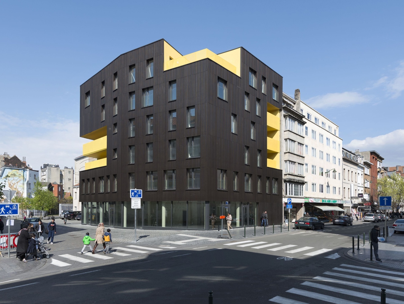 Le projet répond au contexte local en soulignant l'axe urbain existant, entre la tour Brunfaut, la place du Cheval Noir et la place Communale. L'angle urbain est travaillé de manière à répondre aux conditions locales et spécifiques de mitoyennetés aveugles, et à poursuivre non seulement le front bâti de la chaussée, mais également à constituer une articulation tournée vers la maison communale.