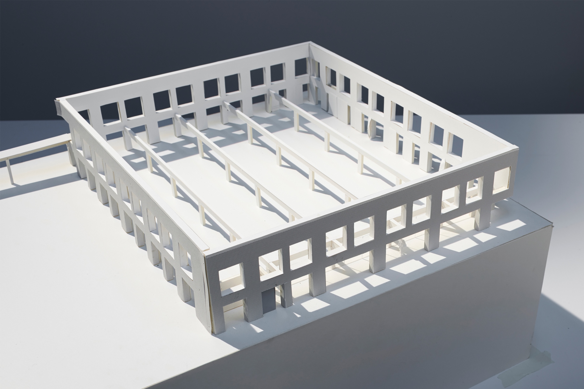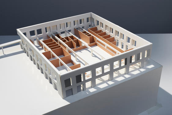 La forme générale du nouveau bâtiment est, par essence, simple et compacte. Ceci permet la mise en œuvre de systèmes constructifs adaptés et peu coûteux ainsi qu’une évolution possible des besoins dans le temps. Le système structurel et la position des ouvertures en façades proposent une « neutralité » spatiale à partir de laquelle différentes configurations de cloisonnements des espaces est alors possible. Ceci suggère que l’organisation du programme pourra aisément faire l’objet d’une évolution dans le temps. Enfin, les fondations du bâtiment sont calculées afin de permettre un rehaussement ultérieur.
