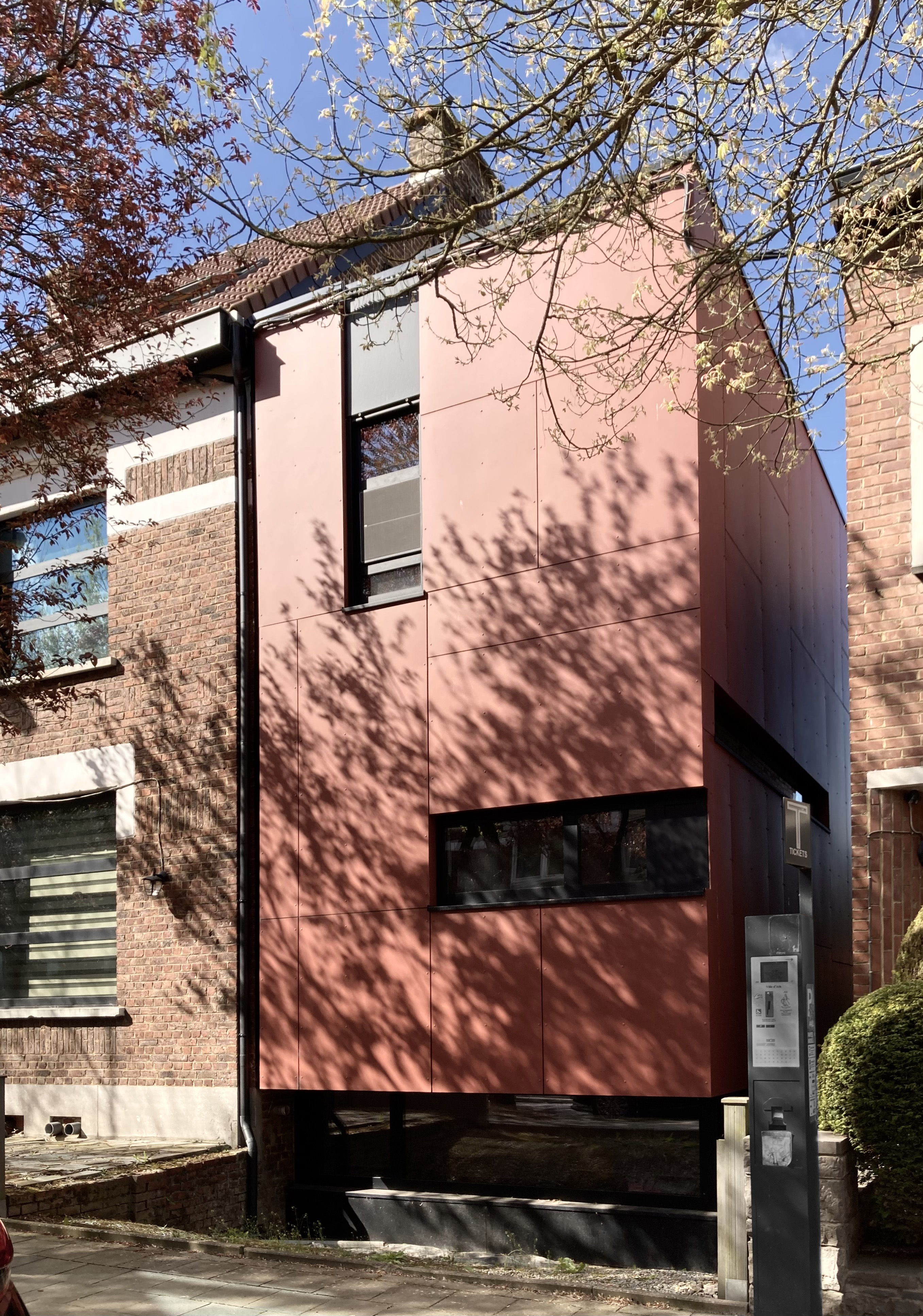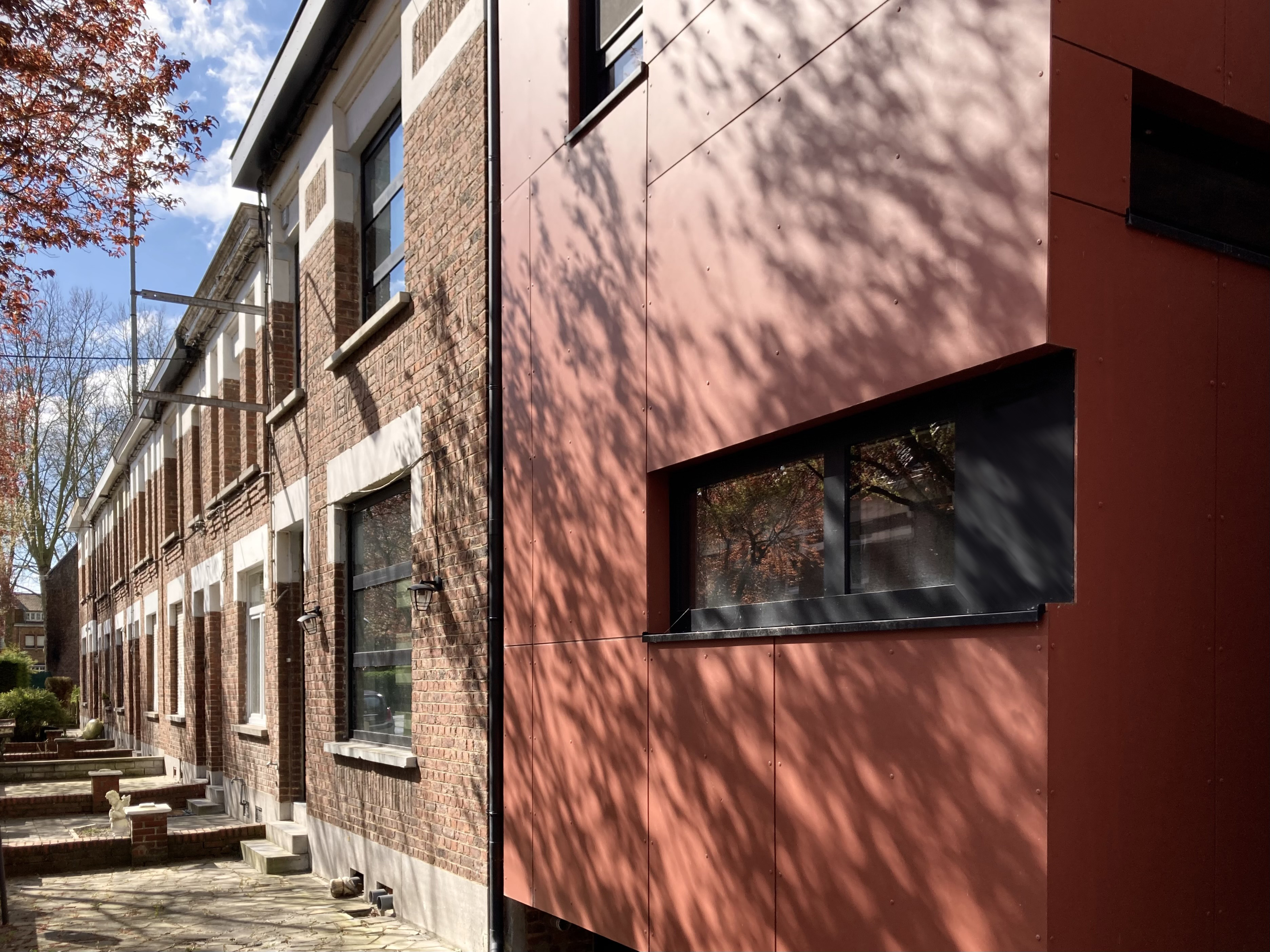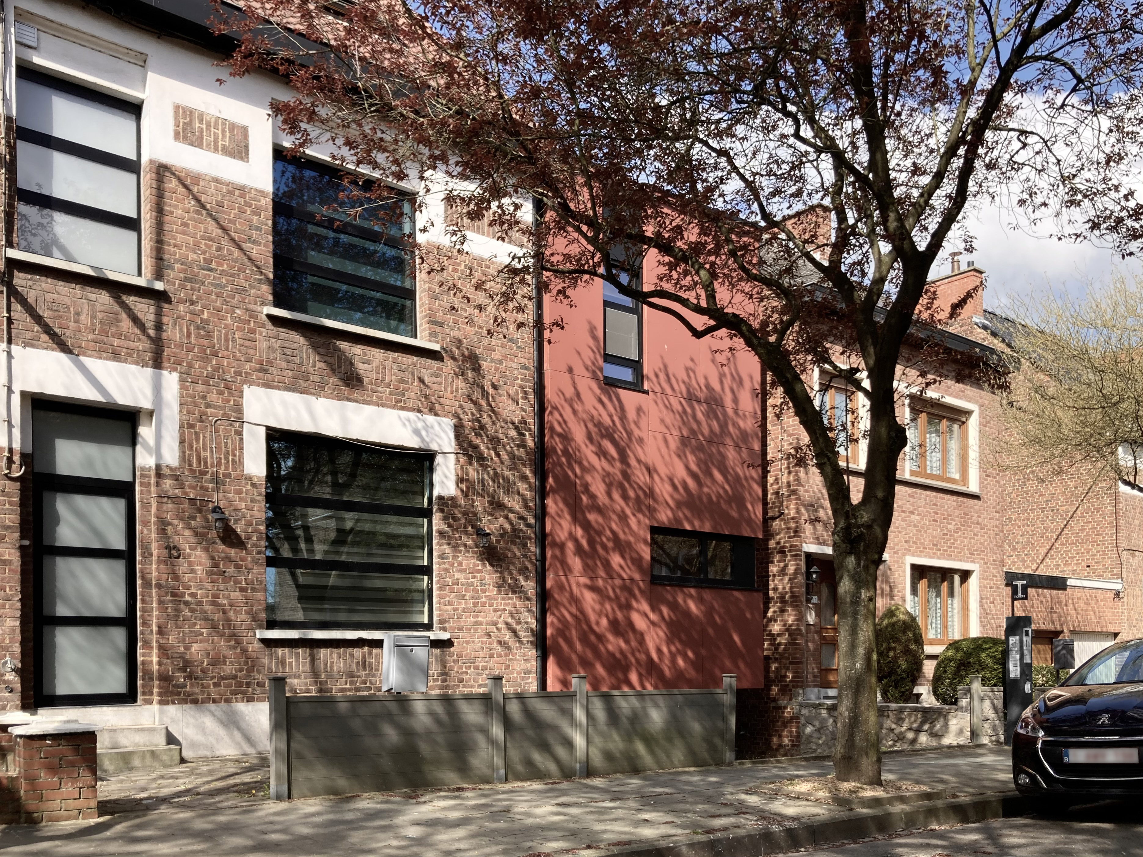 - Le projet visait à agrandir une maison de rangée ouvrière située dans une dent creuse à Ath. L’objectif était d’apporter une extension à la fois fonctionnelle, en harmonie avec l’environnement existant et en respectant le caractère sobre et modeste de l’architecture ouvrière. L’extension prend la forme d’un volume simple, habillé d’un bardage de couleur rouille, qui fait écho aux tonalités environnantes. Ce choix de bardage confère à la façade une présence affirmée en restant en cohérence avec le contexte.[...]