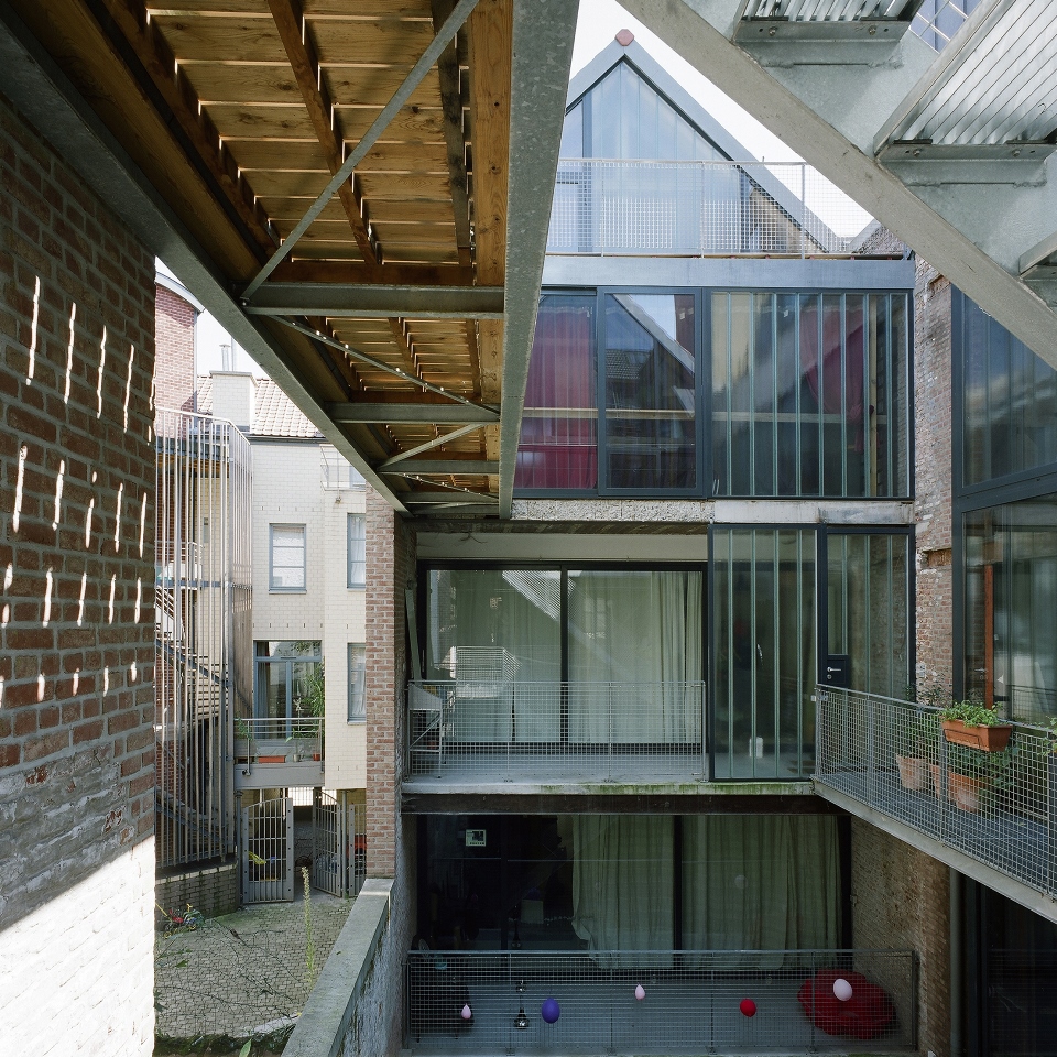 - Dans le cadre du contrat de quartier «Rempart des Moines», rénovation d’un bâtiment industriel en 6 logements (lofts), 1 galerie d’exposition et 3 ateliers.
