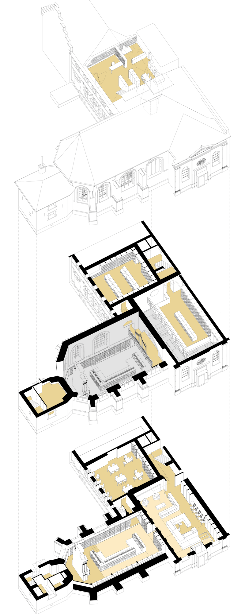 - La création d’une bibliothèque capable de répondre aux attentes et aux enjeux sociétaux en devenir, avec une attractivité particulière pour le jeune public. Le projet essaye de créer des lieux ouverts à toute appropriation, conviviaux et polyvalents tirant parti de la configuration particulière de ces bâtiments culturels.