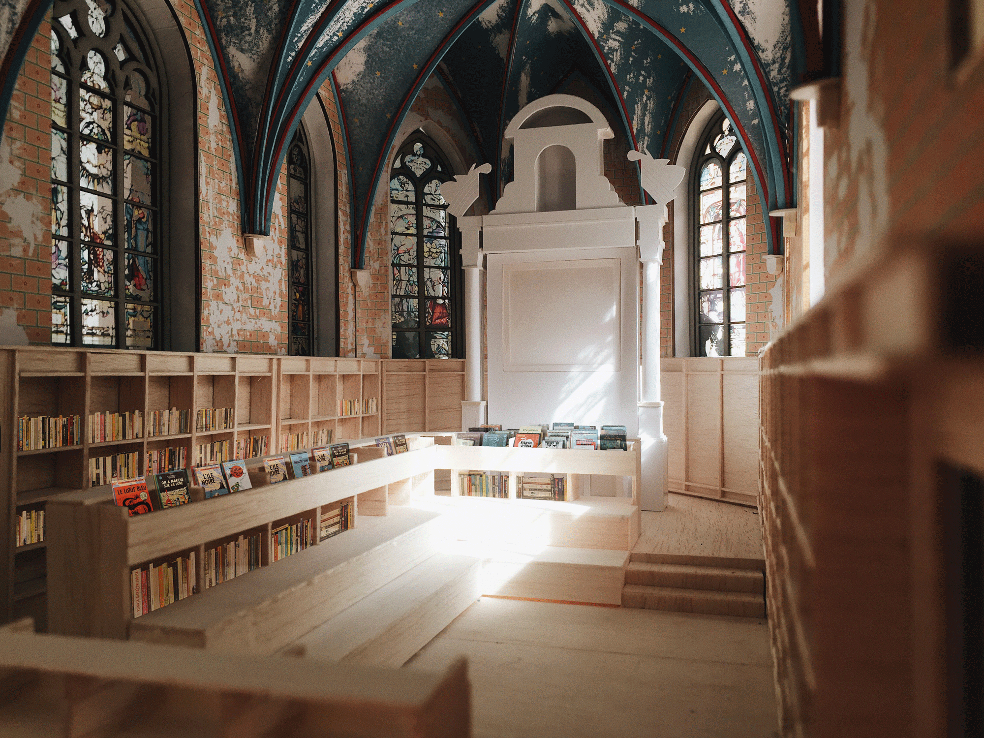 - Le dialogue entre contenu décoratif à connotation religieuse la nouvelle affectation de bibliothèque.