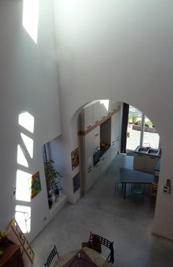 - Le projet tire parti du volume de la grange sur toute sa hauteur et prête une grande attention aux apports de lumière naturelle. La forte interaction entre les espaces des différents niveaux confère une grande convivialité au projet.