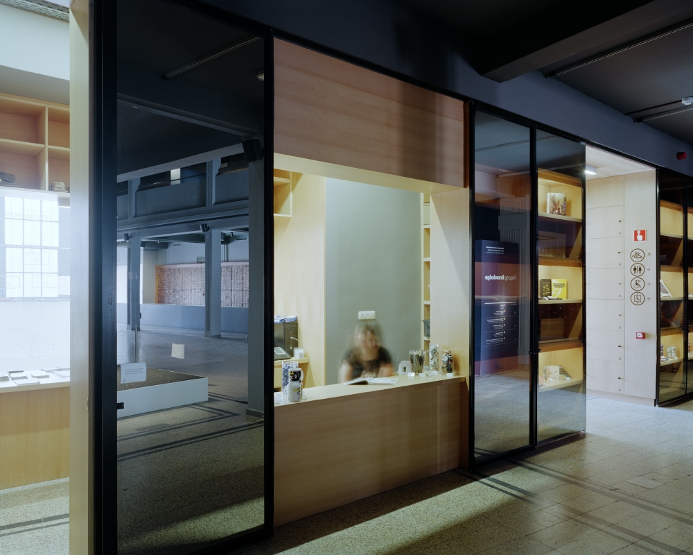 Le bâtiment avant abrite les fonctions d’exposition et d’accueil, le bâtiment arrière abrite les différents services.