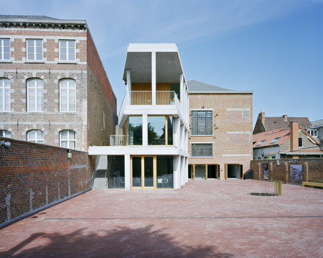 Une nouvelle extension prolonge le bâtiment des expositions. Elle abrite la salle polyvalente et la salle pédagogique articule le bâti existant avec la cour.
