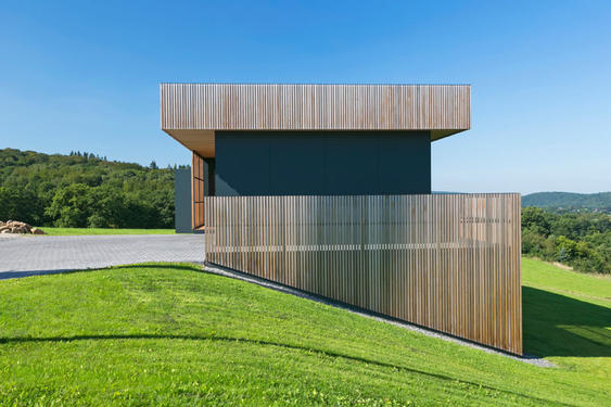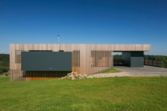 - L'habitation propose à rue une zone de carport intégrée au volume qui permet un accompagnement, à couvert, vers la porte d’entrée. Cet aménagement est agrémenté de fonctions telles qu’un rangement extérieur et un espace de stockage de bois de chauffage.[...]
