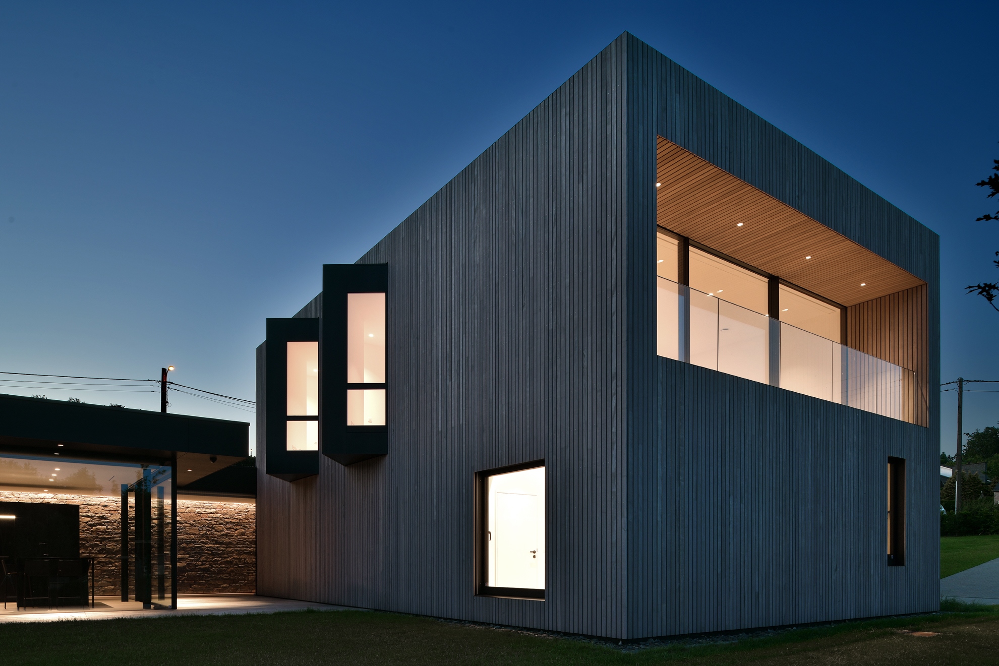 Les façades sobres expriment clairement un espace séjour ouvert ainsi qu’un volume nuit/services plus fermé.