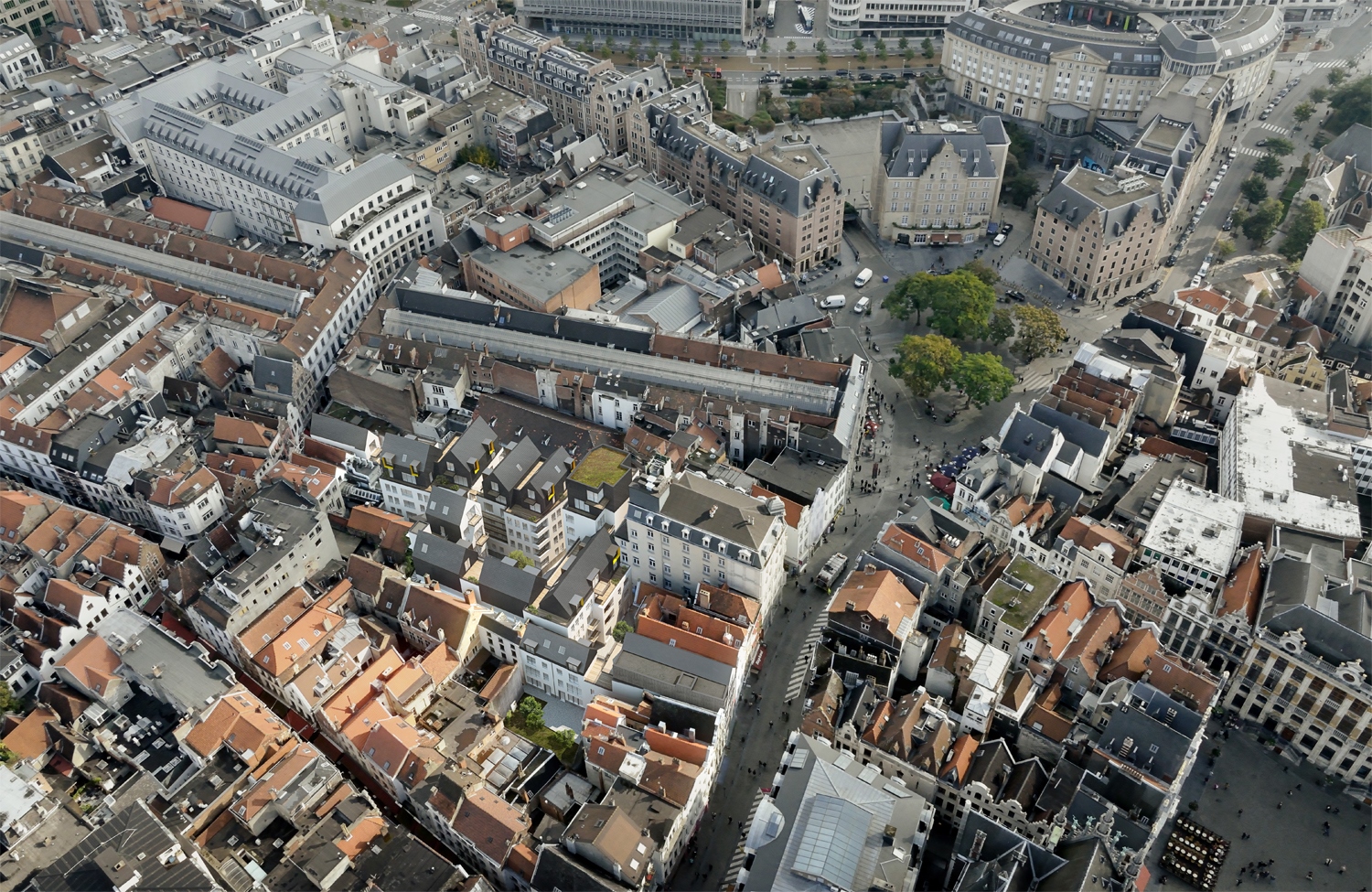 Le projet reçoit un caractère décidément contemporain mais respectueux du tissu urbain environnant. Son architecture et son implantation entrent en dialogue avec l’environnement bâti et l’espace public existants et contribuent à son animation, tout en créant simultanément un endroit agréable à vivre. Le projet repart des ruelles disparues au cours du temps, les élargit et les relie aux anciennes impasses, créant un réseau de ruelles piétonnes interconnectées autour d’une petite place semi-publique à l’intérieur de l’îlot.