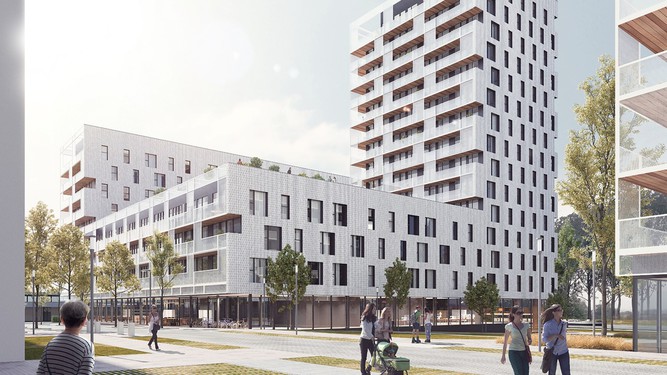 • Une émergence à l’entrée du site (îlot 3), qui joue le rôle de signal urbain depuis le boulevard Industriel.