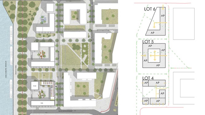 Une approche qui se décline sur trois plans, celui du quartier, plus horizontal, celui du canal, plus vertical, et celui de l’intérieur d’ilot, en creux.