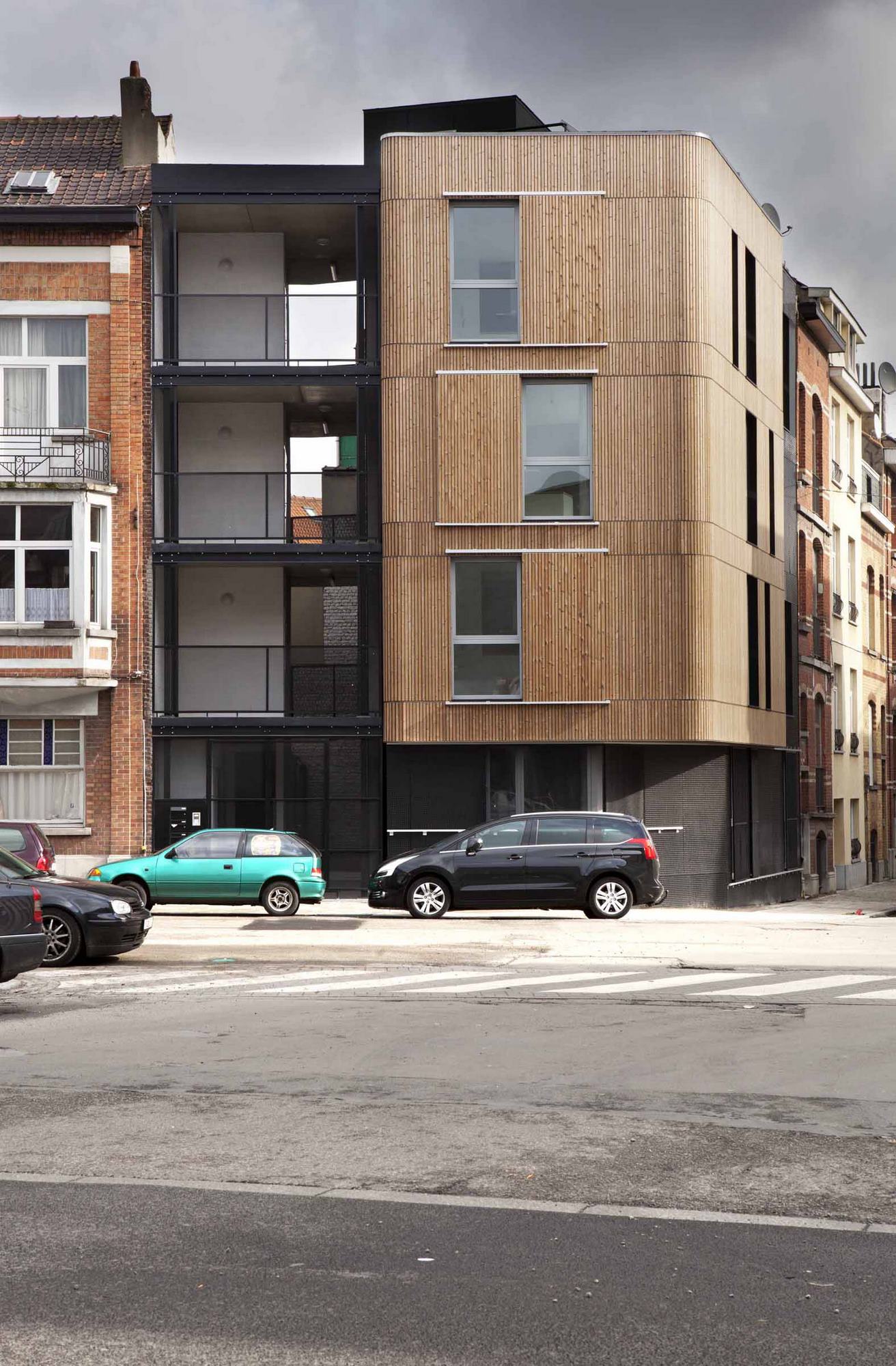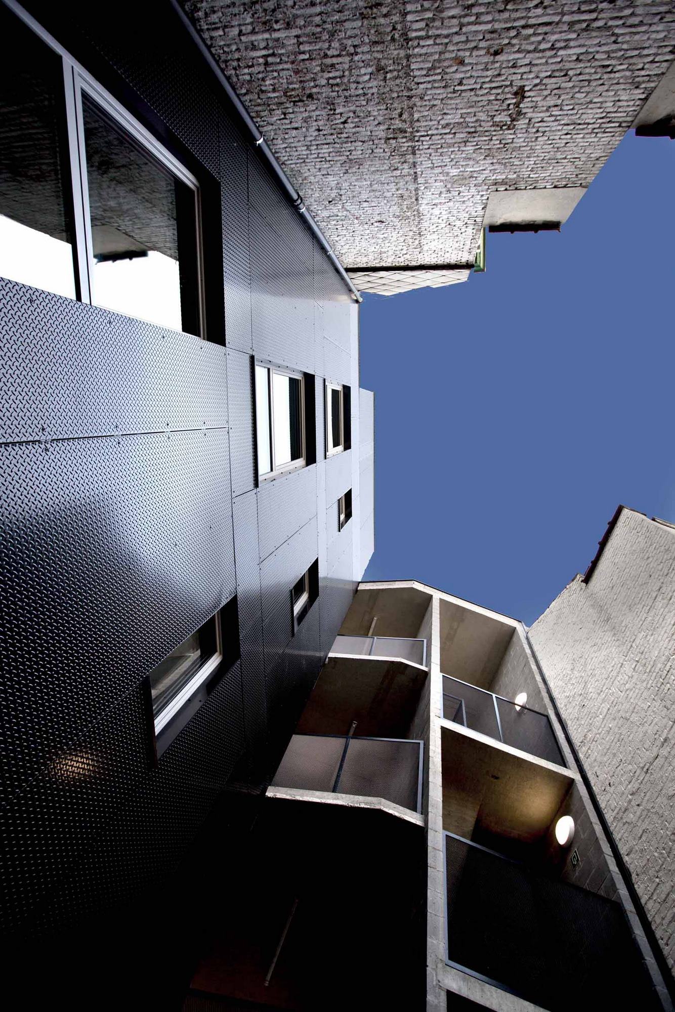 - Il s’agit d’un bâtiment d’angle dont l’exercice d’aménagement nécessite une conception attentive aux apports de lumière. Le programme propose de construire une surface de logement moins grande que la parcelle. Nous profitons de cette situation pour créer une troisième façade à cet immeuble de coin. La zone non bâtie permet de fournir des circulations extérieures.Le projet est un bâtiment à ossature mixte béton / bois et répond aux performances des constructions « passives ».[...]