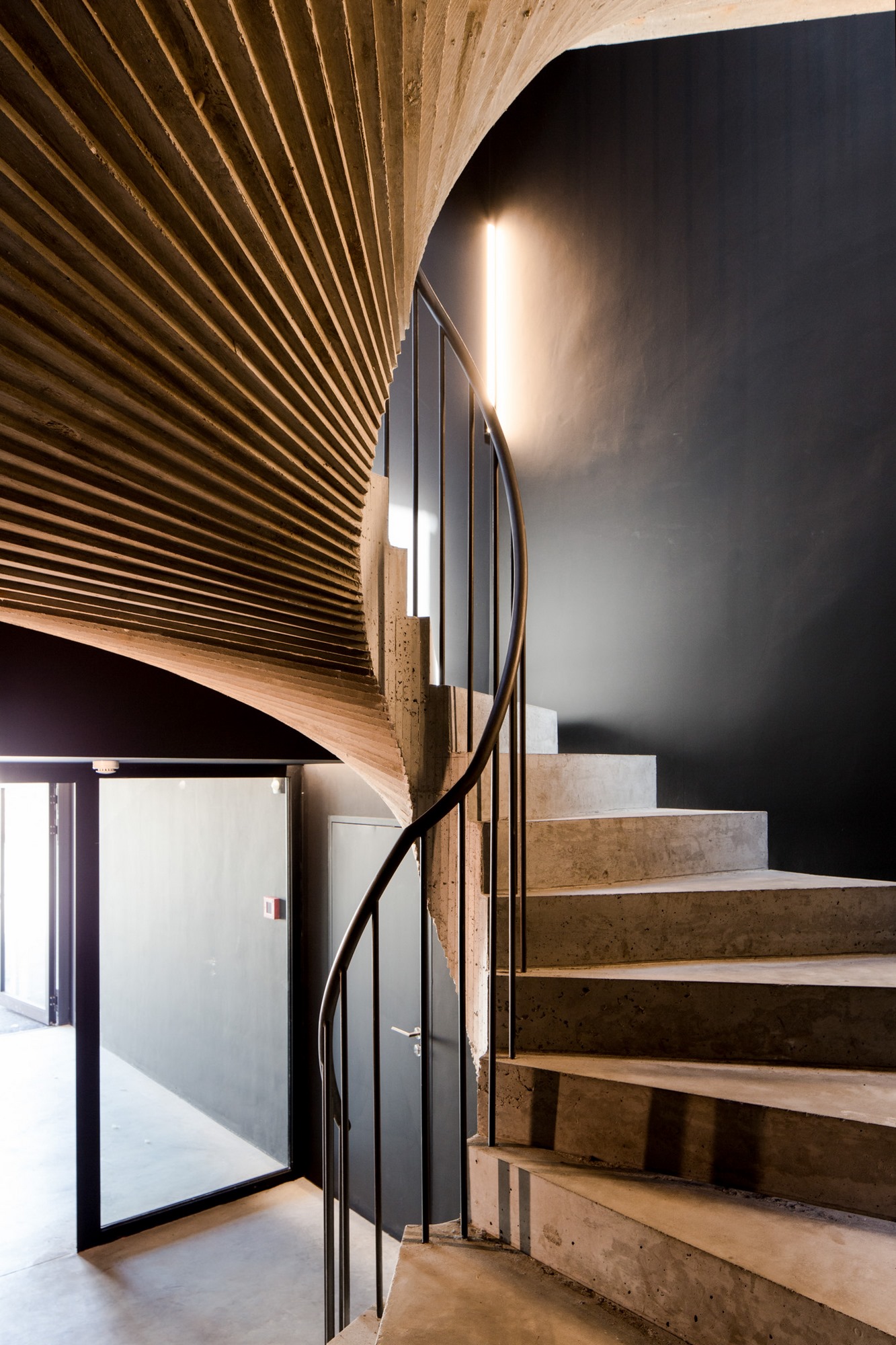L’extension, qui accueille les surfaces de bureau, s’inscrit dans une continuité du bâtiment principal et de la cour de récréation. Le volume projeté est implant