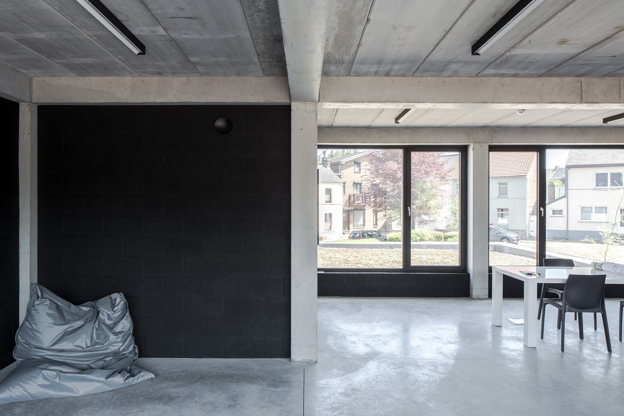 Les logements (maisons individuelles) prennent place naturellement dans chacune des classes existantes du bâtiment principal, profitant chacune d’un espace extérieur privatisé et végétalisé sur la cour de récréation. Les logements sont traversants Est-Ouest et bénéficient d’une orientation optimale. Une flexibilité et une modularité importantes sont induites pour une appropriation aisée des pièces (hall, cuisine ouvrables-refermables).