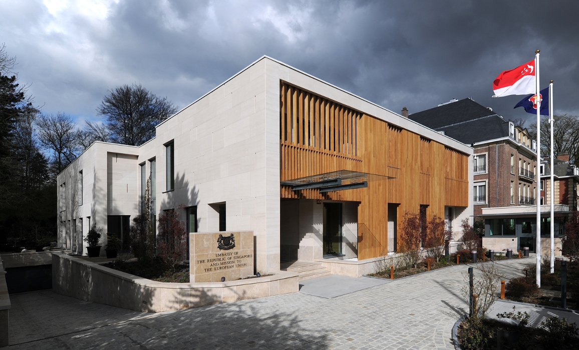 - La nouvelle ambassade de la République de Singapour et la Mission auprès de l’Union Européenne est terminée depuis 2014. Ce bâtiment situé au 85 avenue Franklin Roosevelt à Bruxelles a été conçu par Greenarch architecture + environment (JF Roger France architecte) après avoir gagné le concours international en 2008.[...]