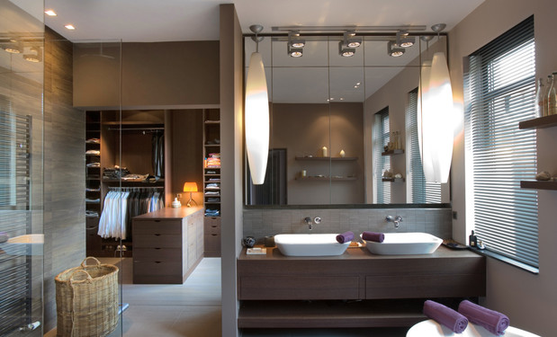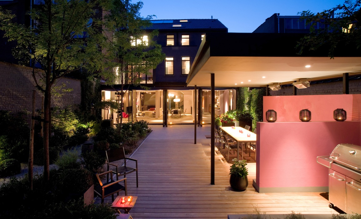 - Une grande maison située à Evere, à Bruxelles, avec un style Art Déco a été rénové pour un directeur de marketing - communication et de sa famille. La maison a été agrandie côté jardin d’une extension métallique avec de grandes et hautes fenêtres. Ces fenêtres s'ouvrent dans le jardin et permettent une bonne visibilité et une connexion à la terrasse et la vue. Le jardin a été conçu pour être de plus en plus sauvage au plus l'occupant va profondément dans le fond du jardin.[...]